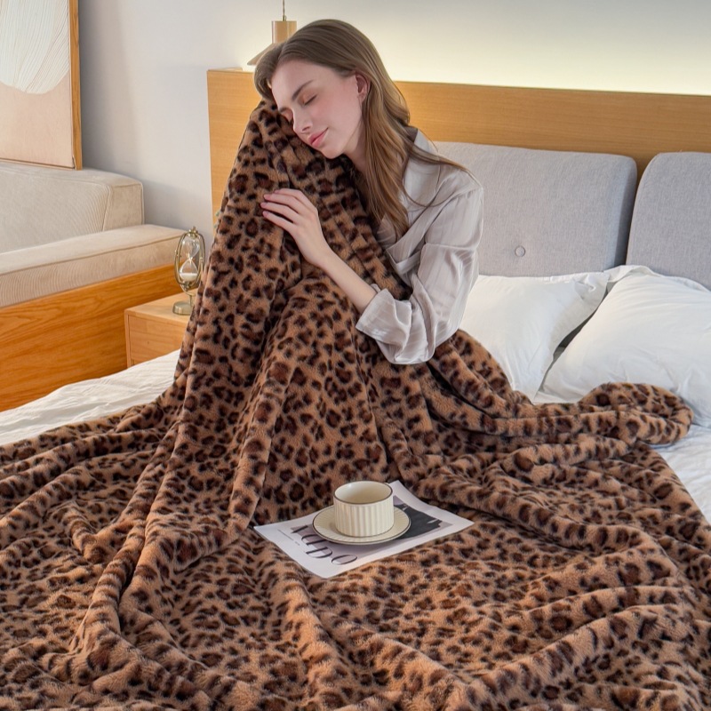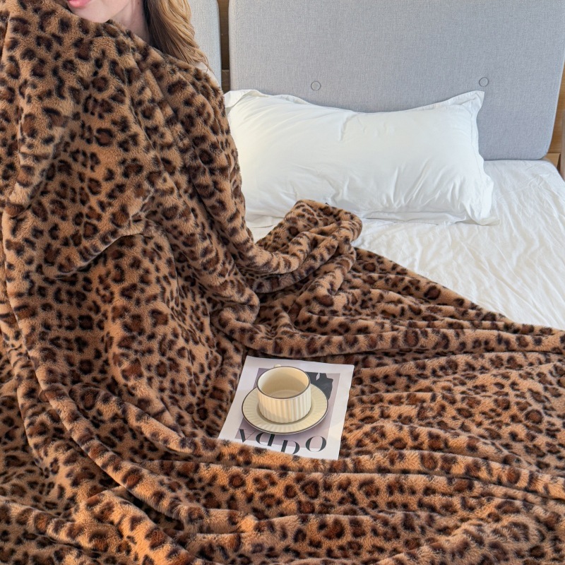 레오파드 프린트 담요, 모조 토끼털 침대 담요, 소파 담요, 소형 담요, 양면 두꺼운 낮잠 담요, 담요스토어 가기