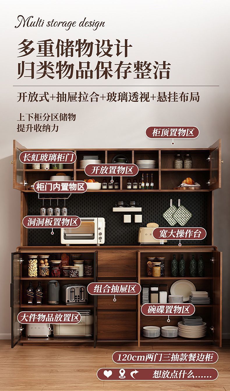 주방 찬장 벽 일체형 수납 캐비닛 거실 새로운 중국 스타일 작은 아파트 간단한 호두 색상 캐비닛 Foshan스토어 가기
