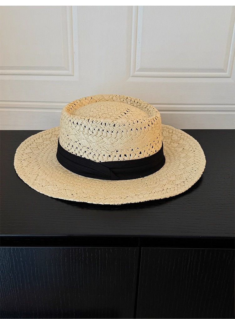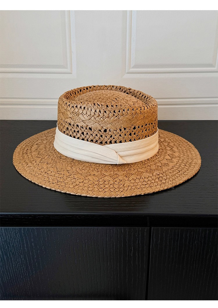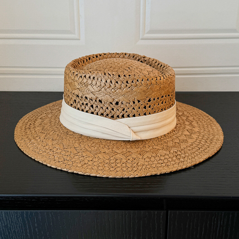 여성을위한 프랑스 복고풍 올드 머니 스타일 중공 플랫 탑 밀짚 모자 여름 해변 휴가 스타일 태양 모자 탑 모자 태양 보호 모자