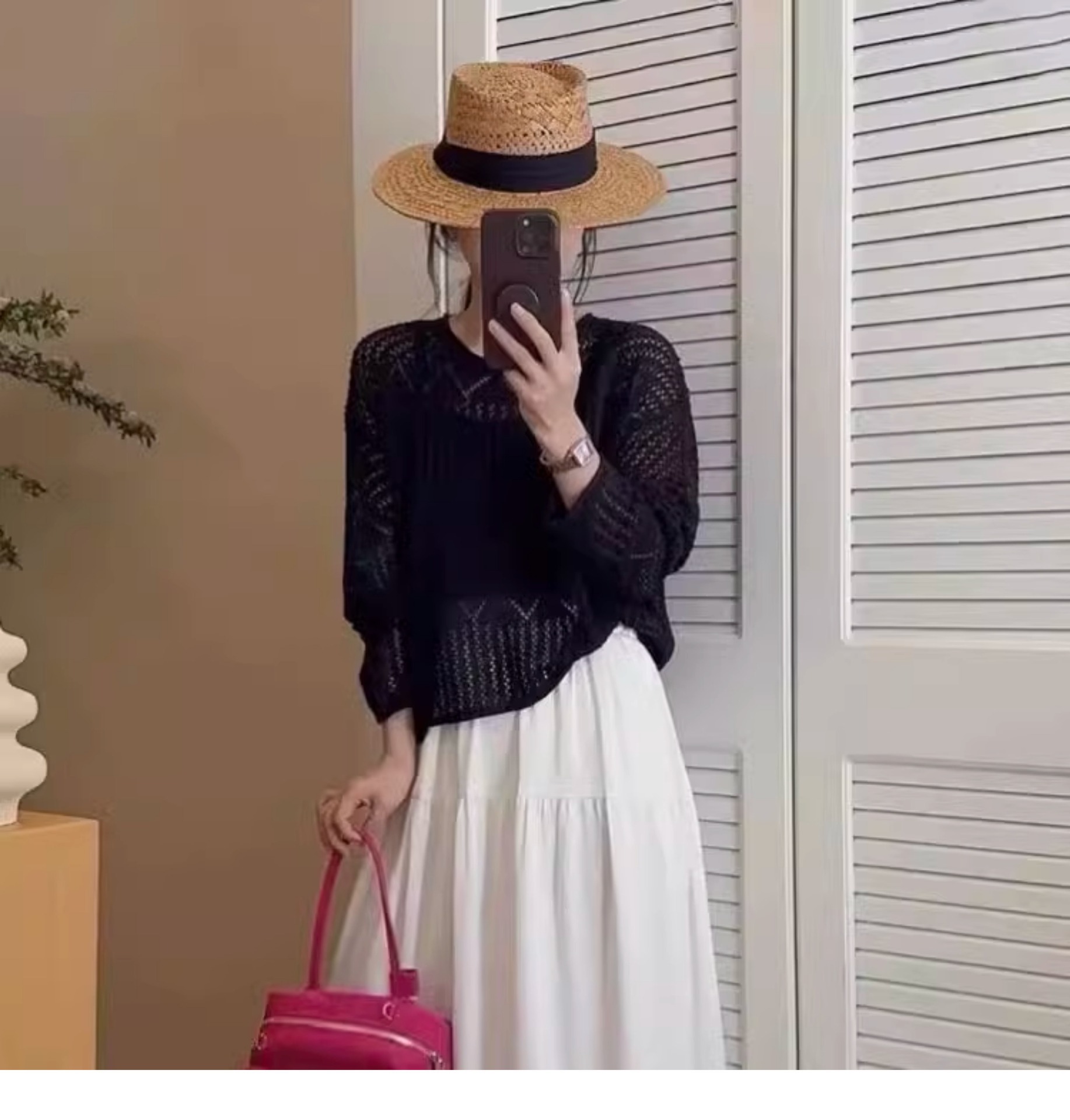 法式复古老钱风镂空平顶草帽女夏季海边度假风遮阳帽礼帽防晒帽子