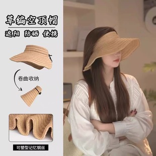 2025夏季新款大檐防晒空顶帽子女沙滩海边全脸遮阳度假可折叠草帽