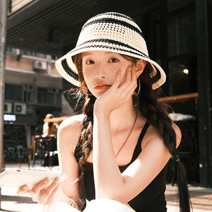 日系草编编织渔夫帽子女2025年新款大帽檐镂空出游度假防晒遮阳帽