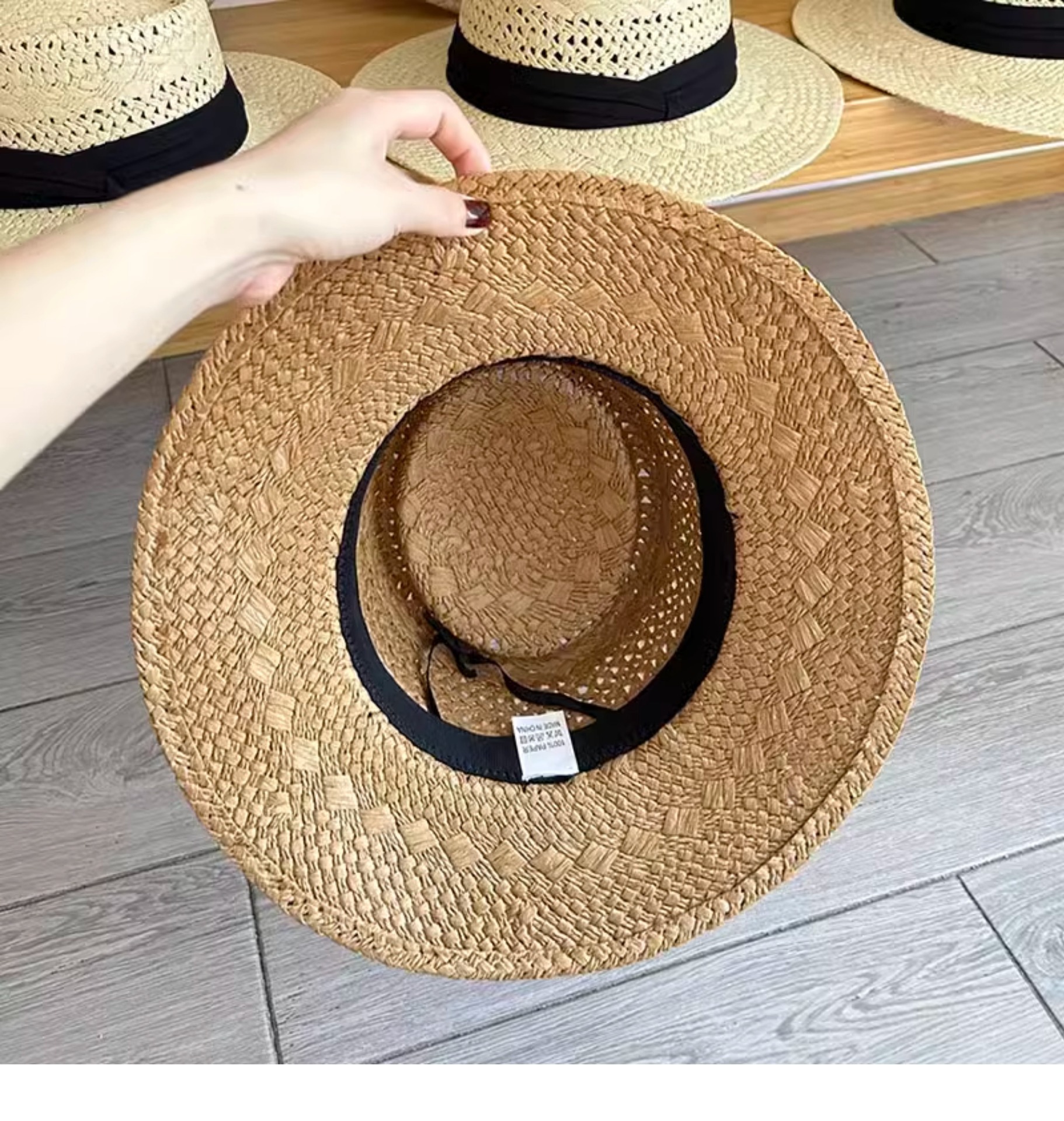 여성을위한 프랑스 복고풍 올드 머니 스타일 중공 플랫 탑 밀짚 모자 여름 해변 휴가 스타일 태양 모자 탑 모자 태양 보호 모자스토어 가기