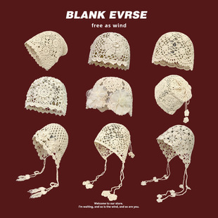波西米亚手工编织镂空包头帽女士钩花民族风旅行拍照套头针织帽子