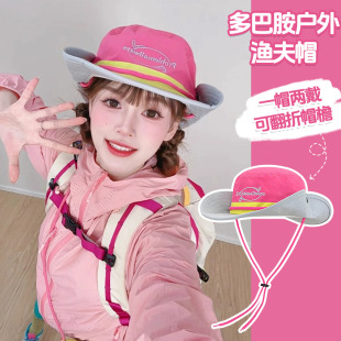 2025新款复古工装多巴胺拼色大檐渔夫帽子女春夏季户外防晒登山帽