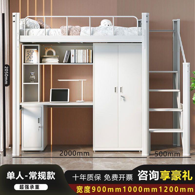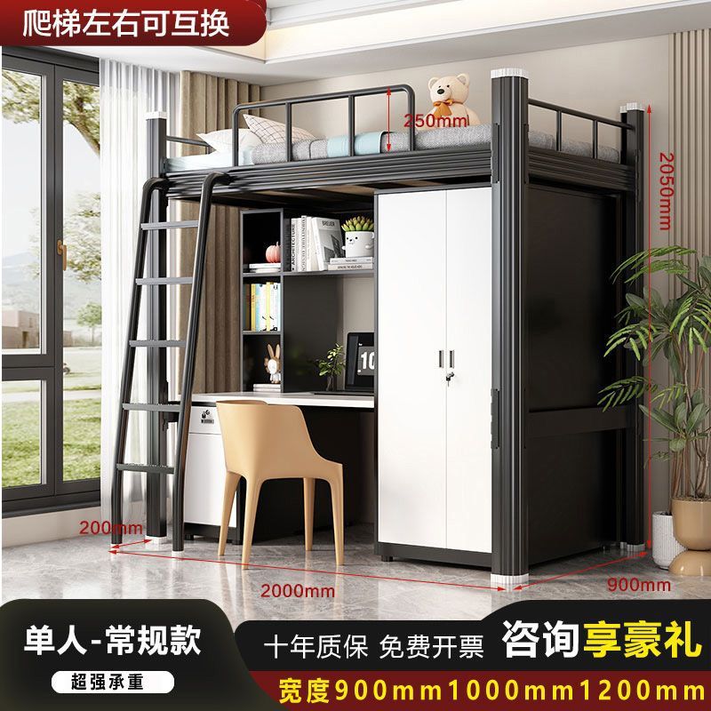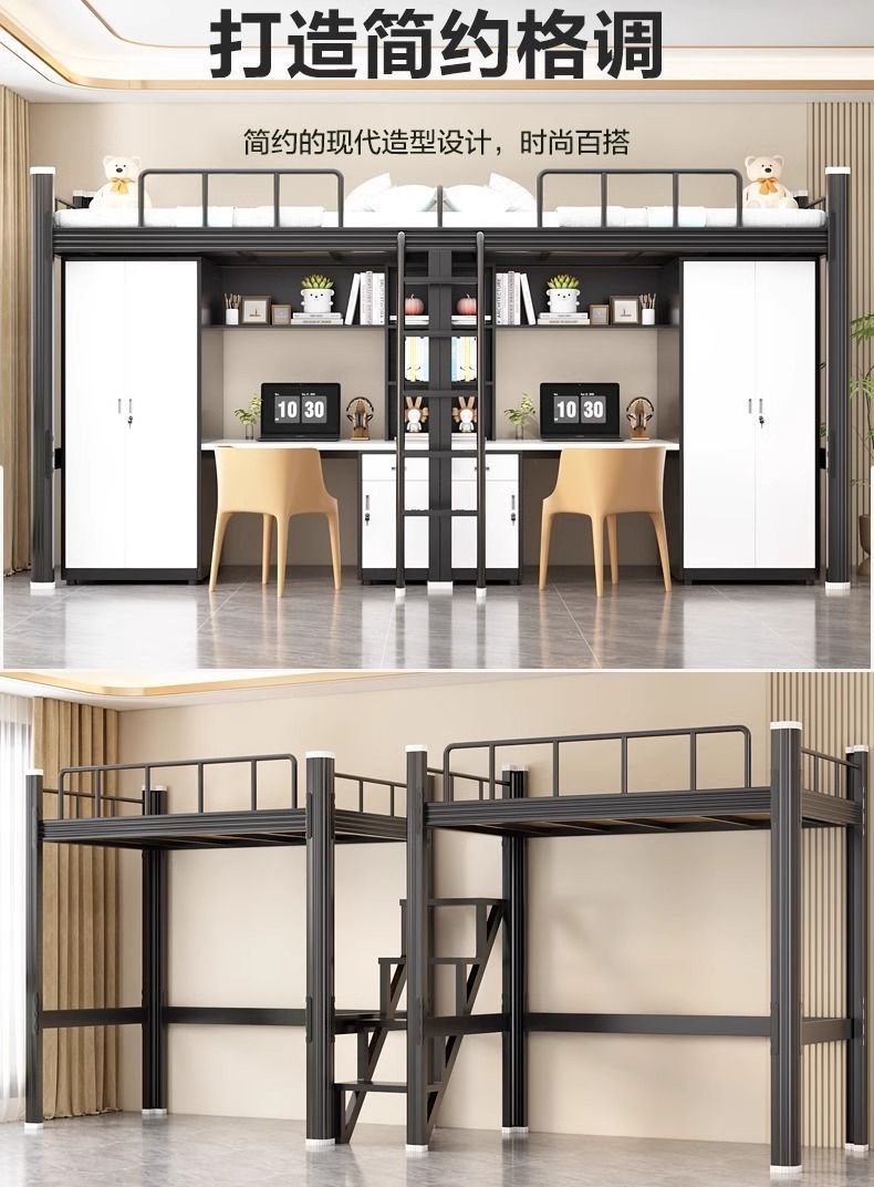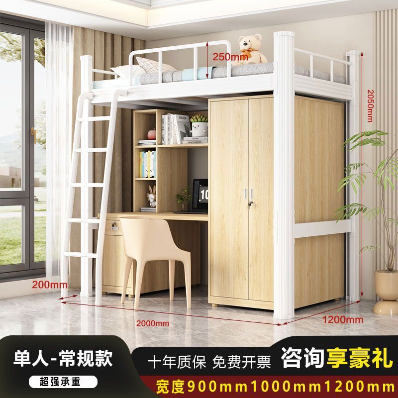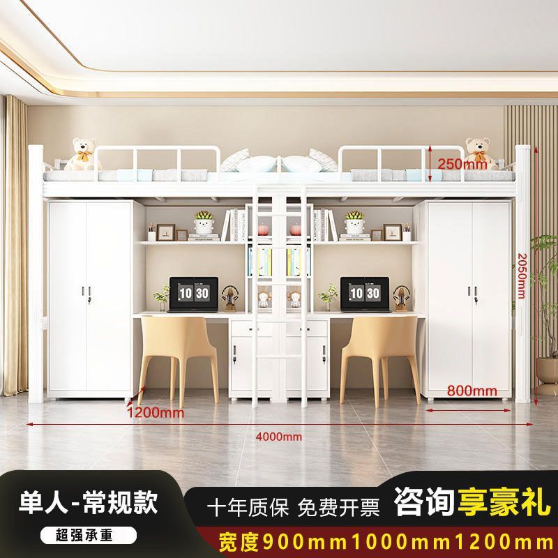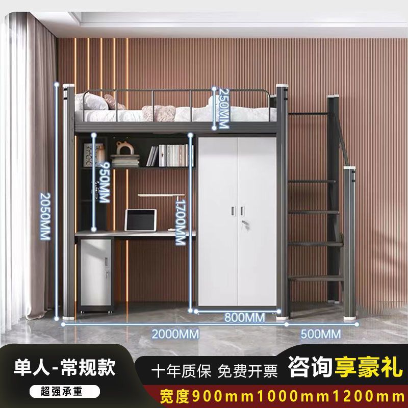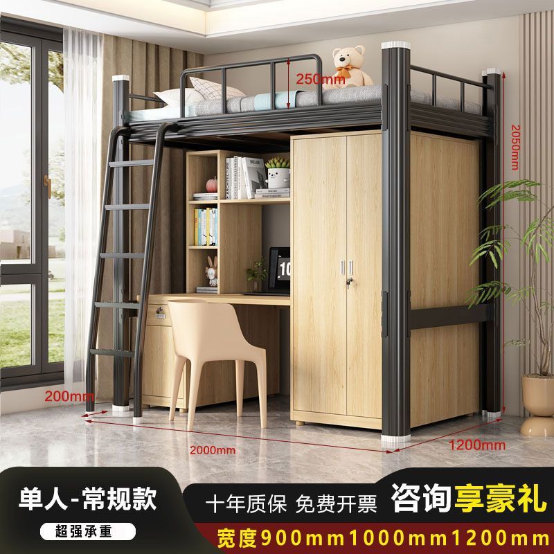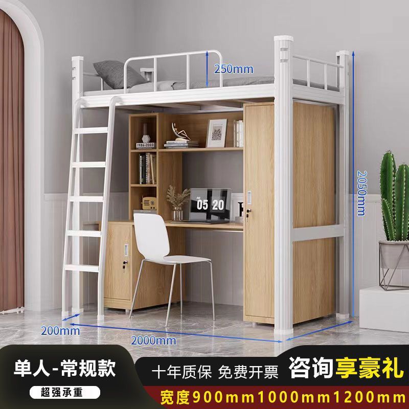 철제 강철 목재 침대 학교 직원 기숙사 침대 위 책상 작은 아파트 침실 임대 아파트 침대스토어 가기