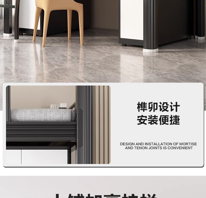 • 블랙 싱글 침대 200*90*204cm (2단 하부 캐비닛 + 원목 보드 + 바닥 사다리 + 이중 도어 캐비닛 스틸 포함)