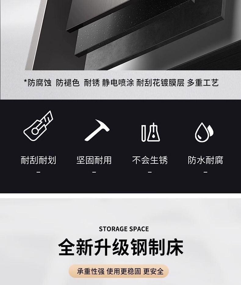 • 블랙 싱글 침대 200*100*204cm (2단 하부 캐비닛 + 원목 보드 + 바닥 사다리 + 이중 도어 캐비닛 스틸 포함)