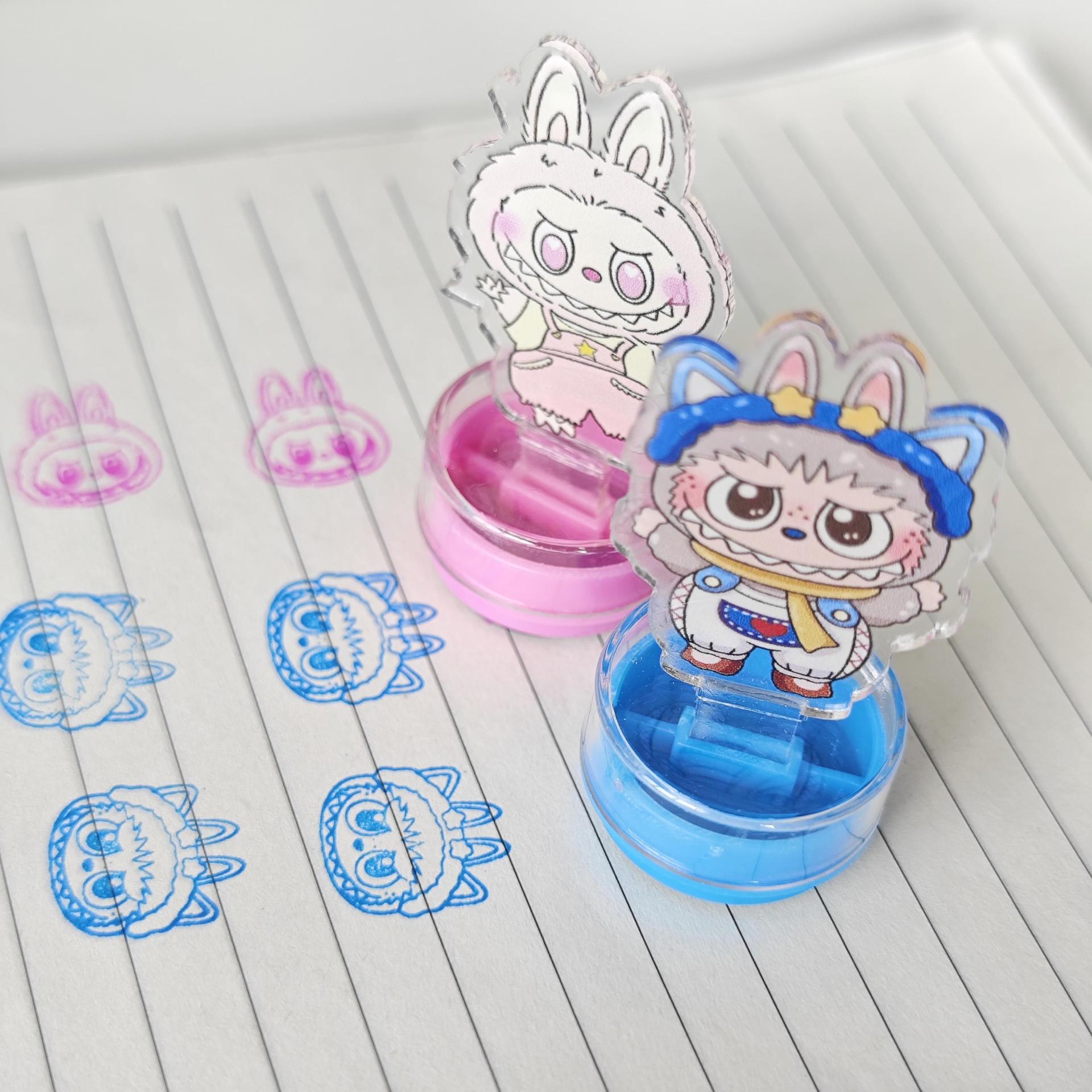 국경 간 새로운 LABUBU 18피스 아크릴 스탬프 창의적이고 귀여운 대외 무역 LABUBU 어린이 보상 스탬프 배치스토어 가기
