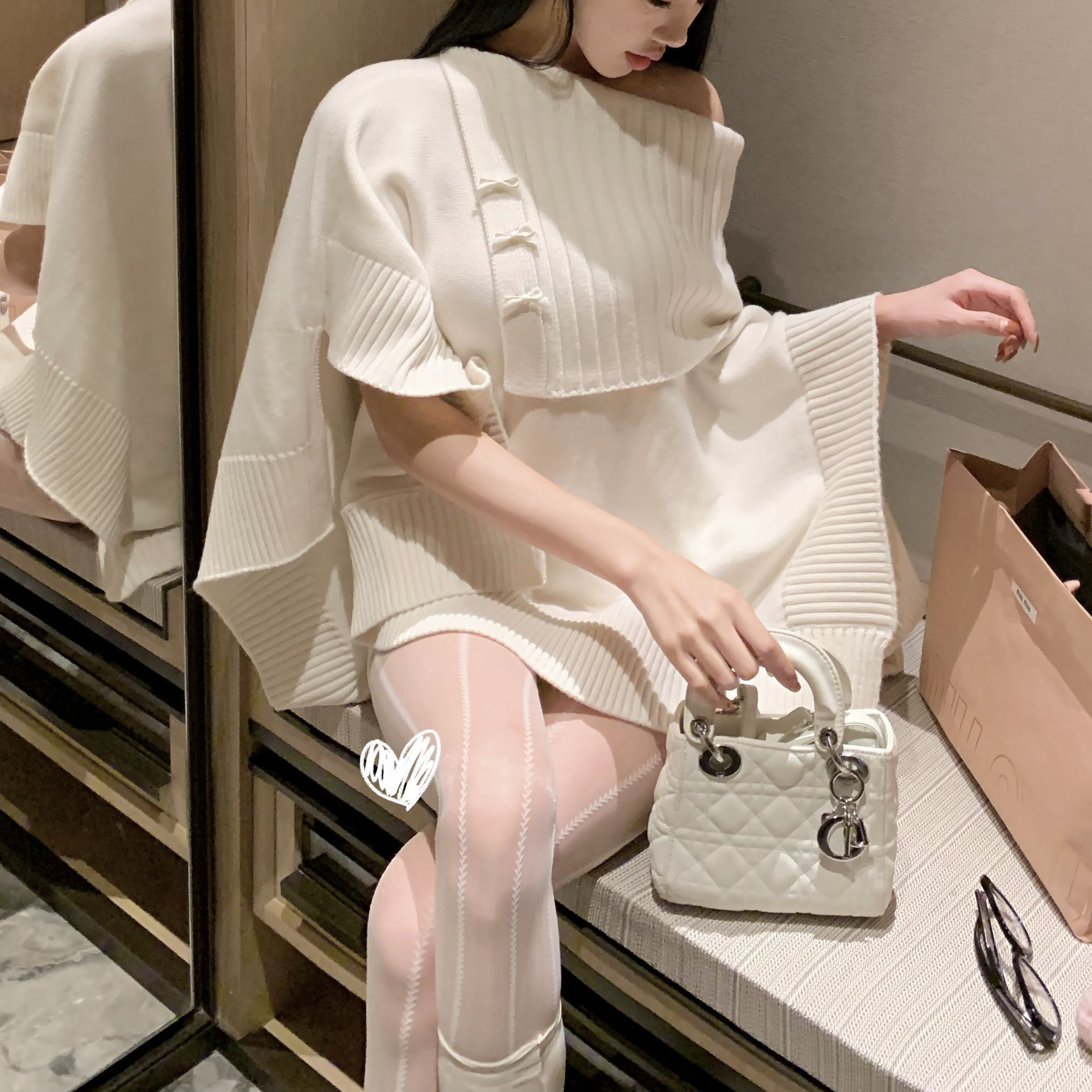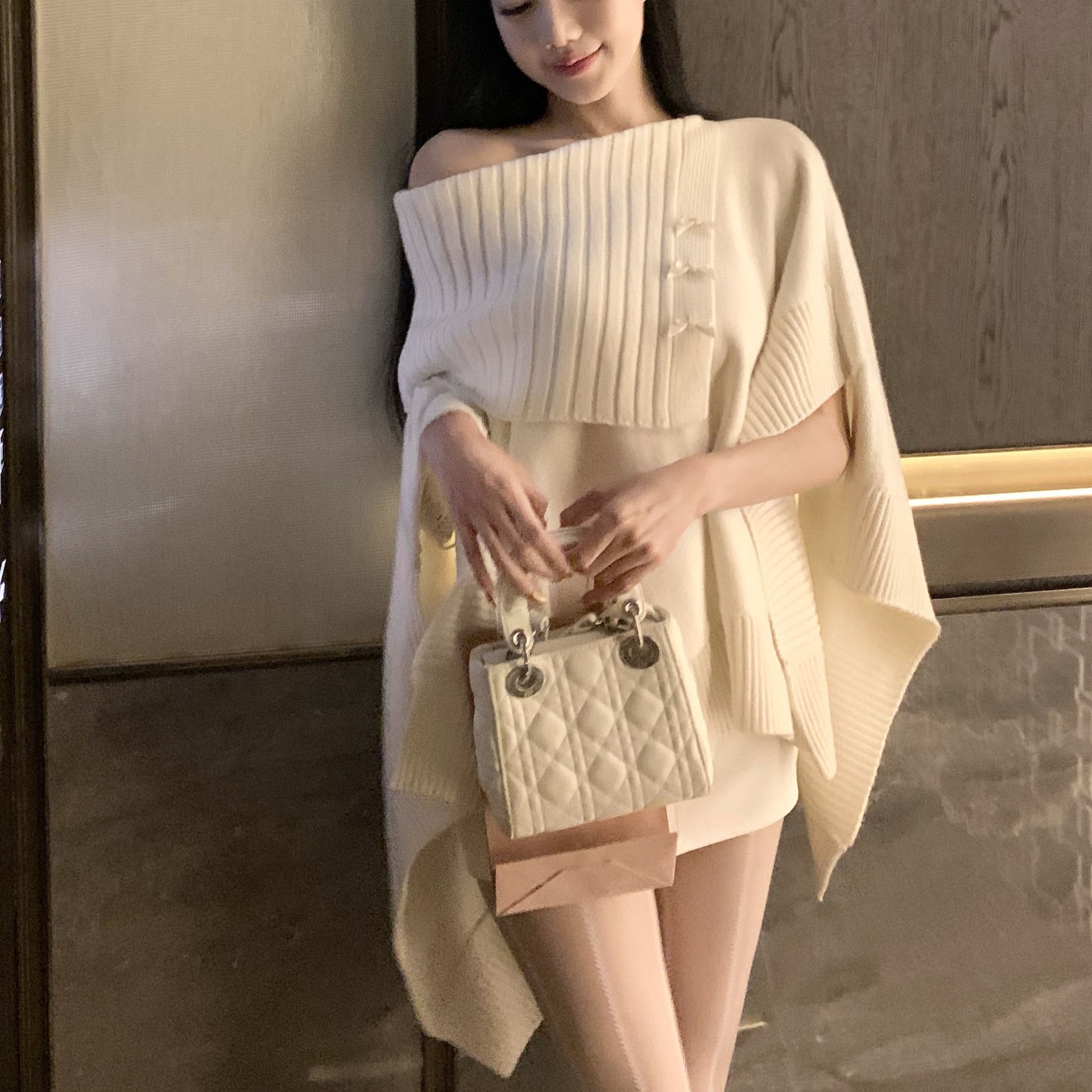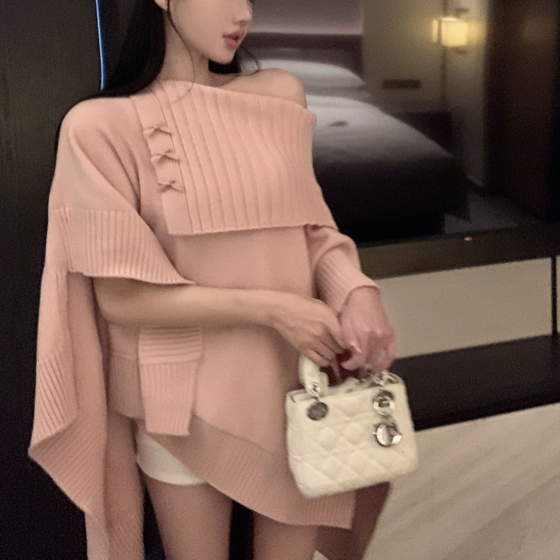 가을 겨울 여성용 레이지 스타일 스웨터, 루즈하고 패셔너블한 불규칙한 디자인, 원 숄더 숄 케이프 스웨터 탑