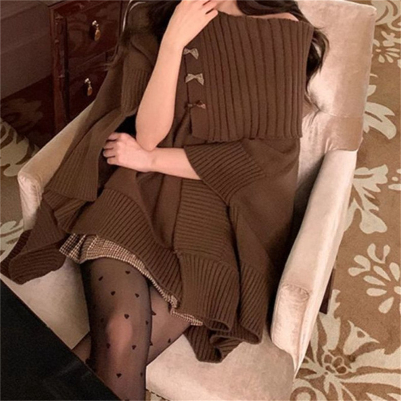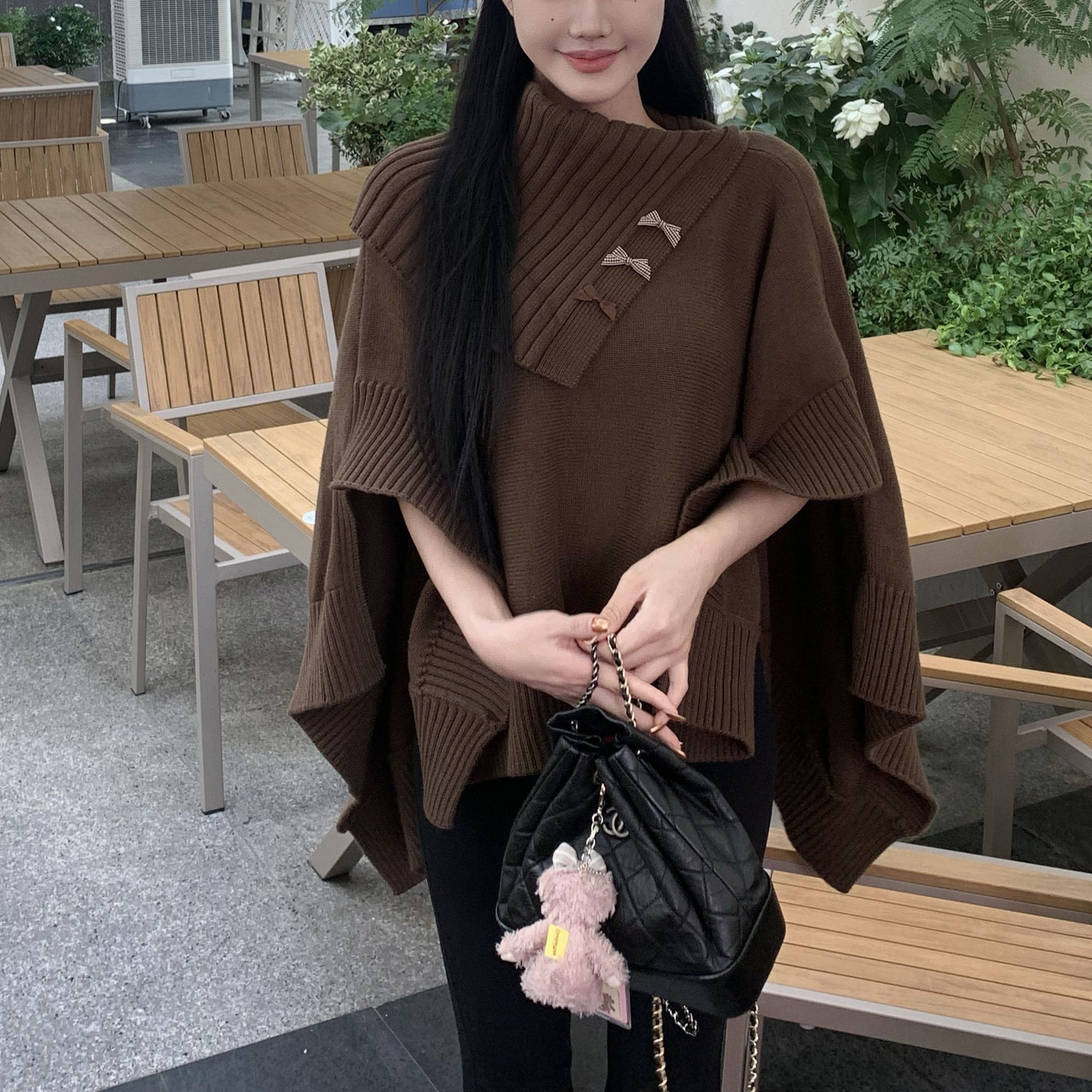 가을 겨울 여성용 레이지 스타일 스웨터, 루즈하고 패셔너블한 불규칙한 디자인, 원 숄더 숄 케이프 스웨터 탑스토어 가기