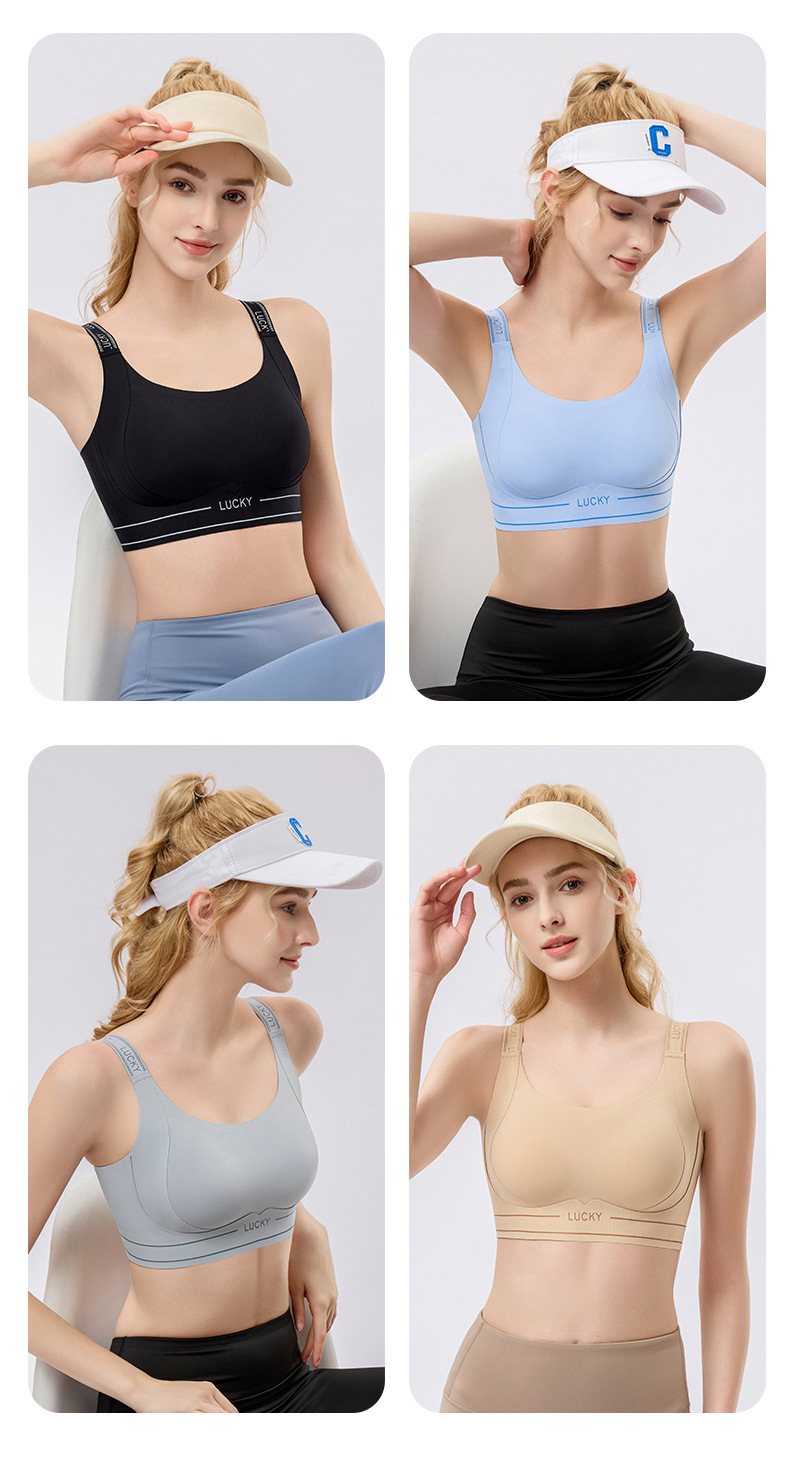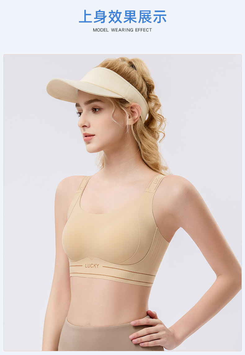 조절 가능한 리퀴드 파운데이션, 흔적 없는 고강도 충격 방지 스포츠 브라, 일체형 고정 컵 단추 통기성 스포츠 브라
