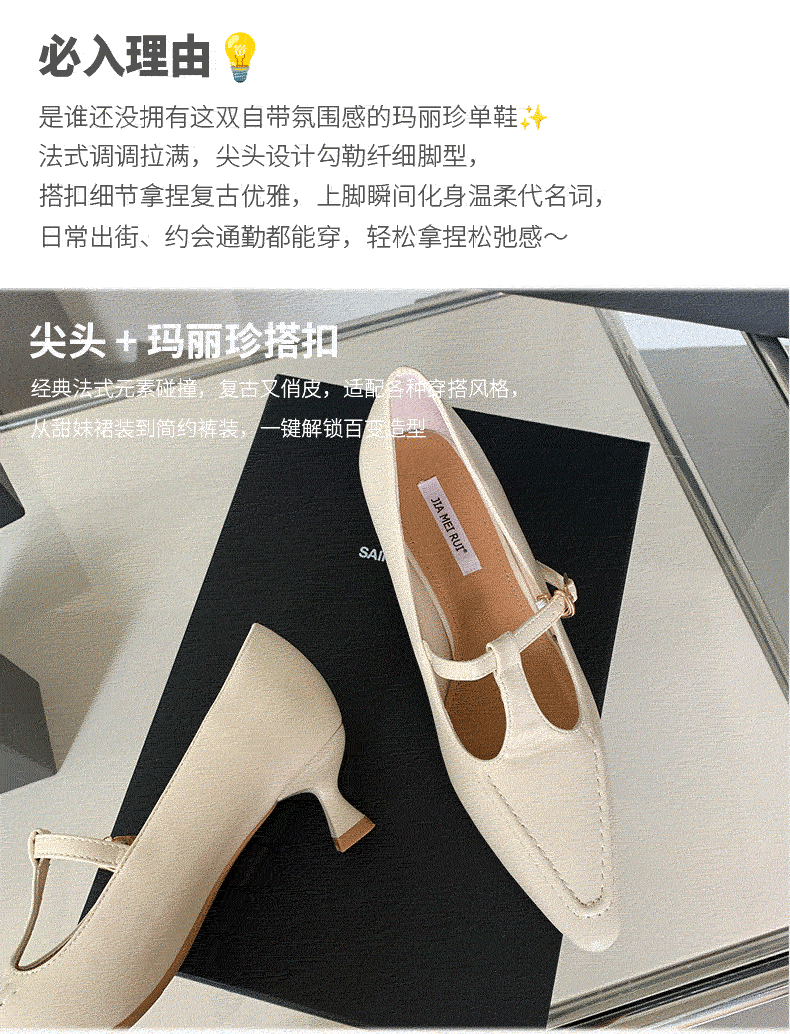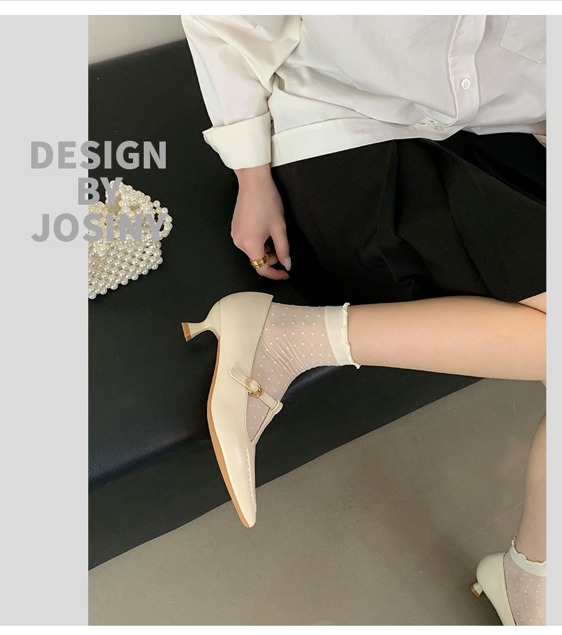 Xiaoxiangfeng 2025 여성용 봄 싱글 슈즈, 중공 작은 사각형 발가락 스틸레토 힐, 인기 있는 메리 제인 슈즈, 여성용 틈새 화이트 하이힐스토어 가기