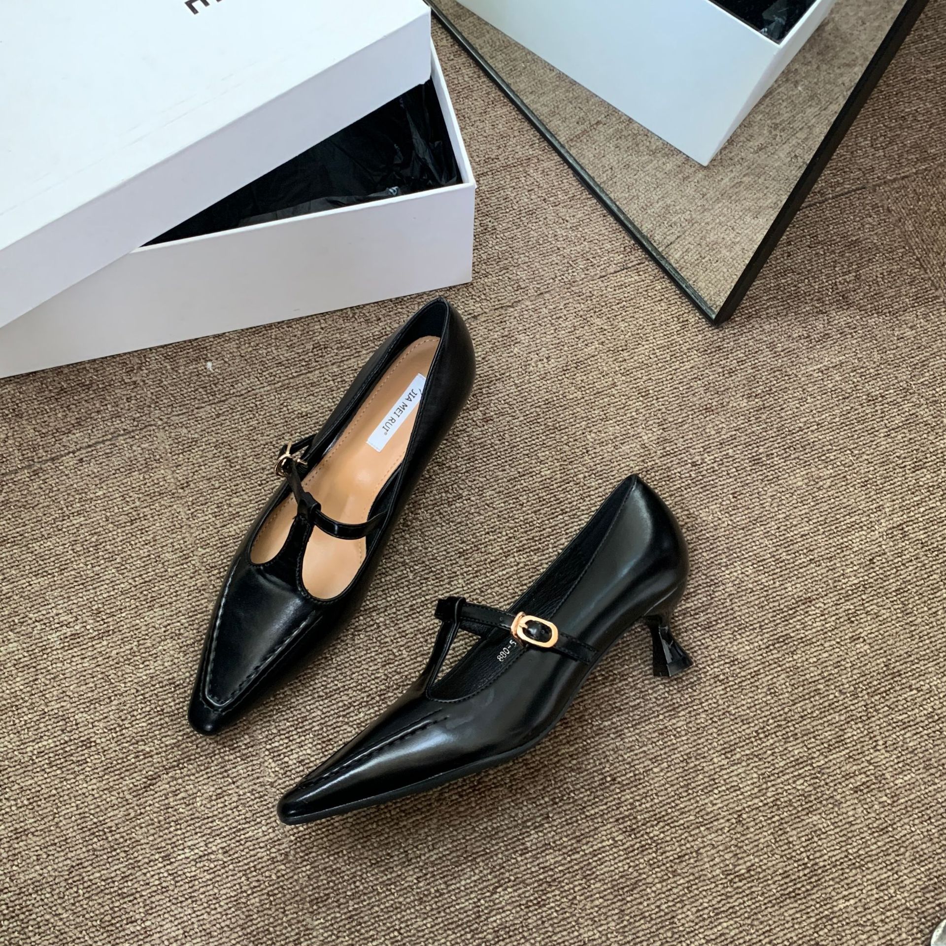 Xiaoxiangfeng 2025 여성용 봄 싱글 슈즈, 중공 작은 사각형 발가락 스틸레토 힐, 인기 있는 메리 제인 슈즈, 여성용 틈새 화이트 하이힐