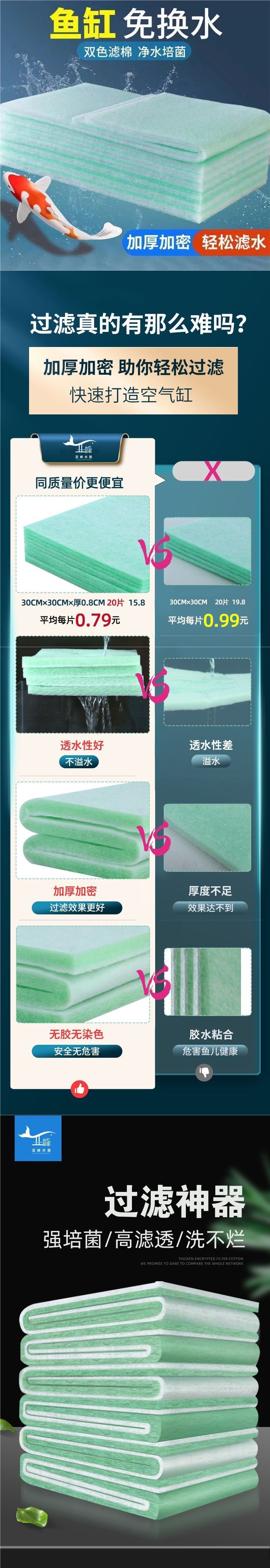 수조 필터 면, 녹색 면, 고밀도 상부 필터 면 시트 소재, 정수 및 두꺼운 흰색 스폰지, 매우 두꺼운 녹색 및 흰색 면스토어 가기