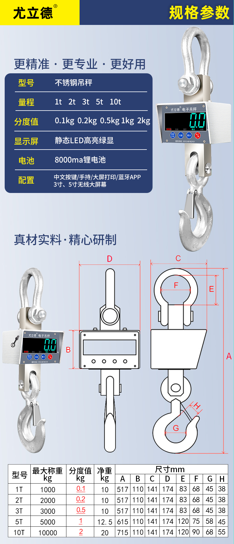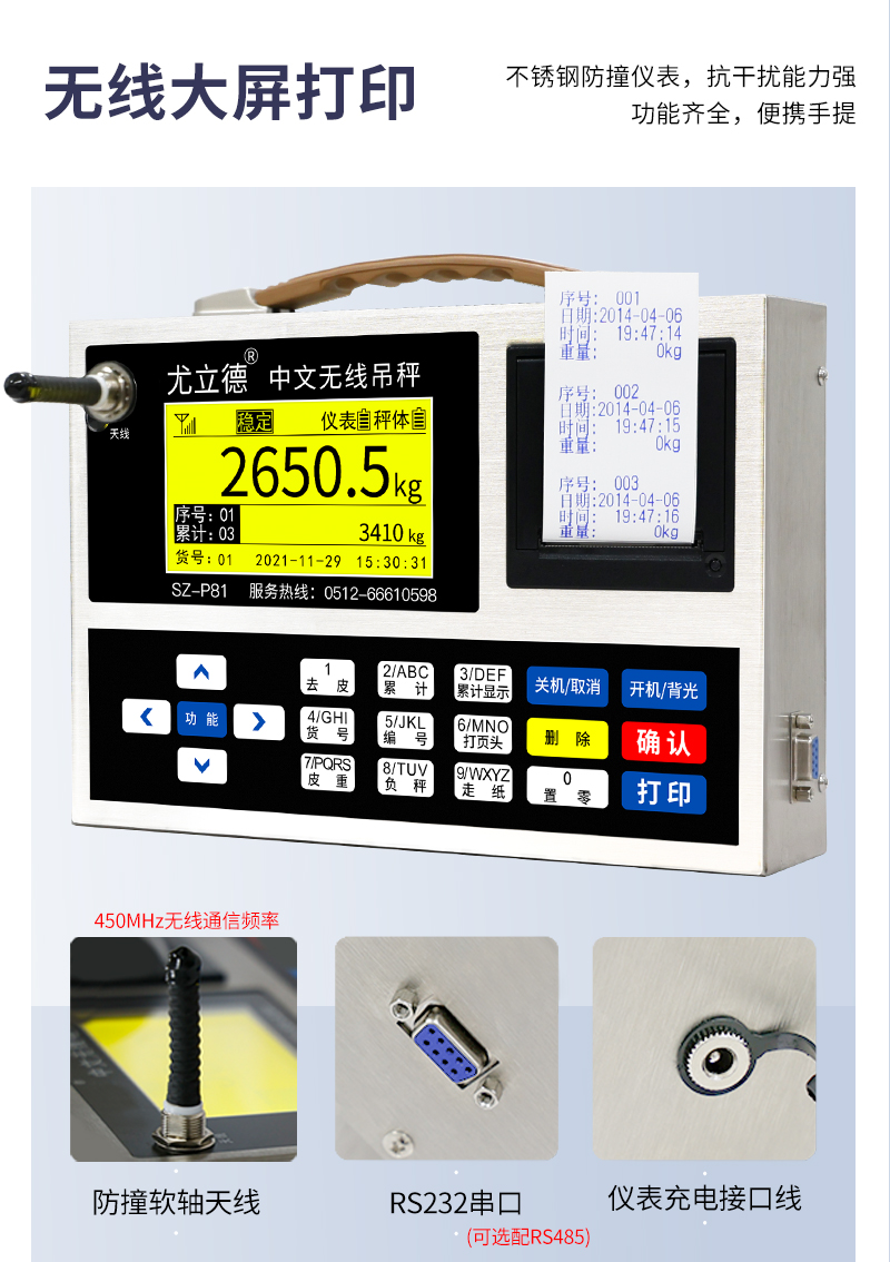 • 경량형[2톤] + 무선 핸드헬드/201 스테인레스 스틸 쉘/고휘도 녹색 문자/공장 직영