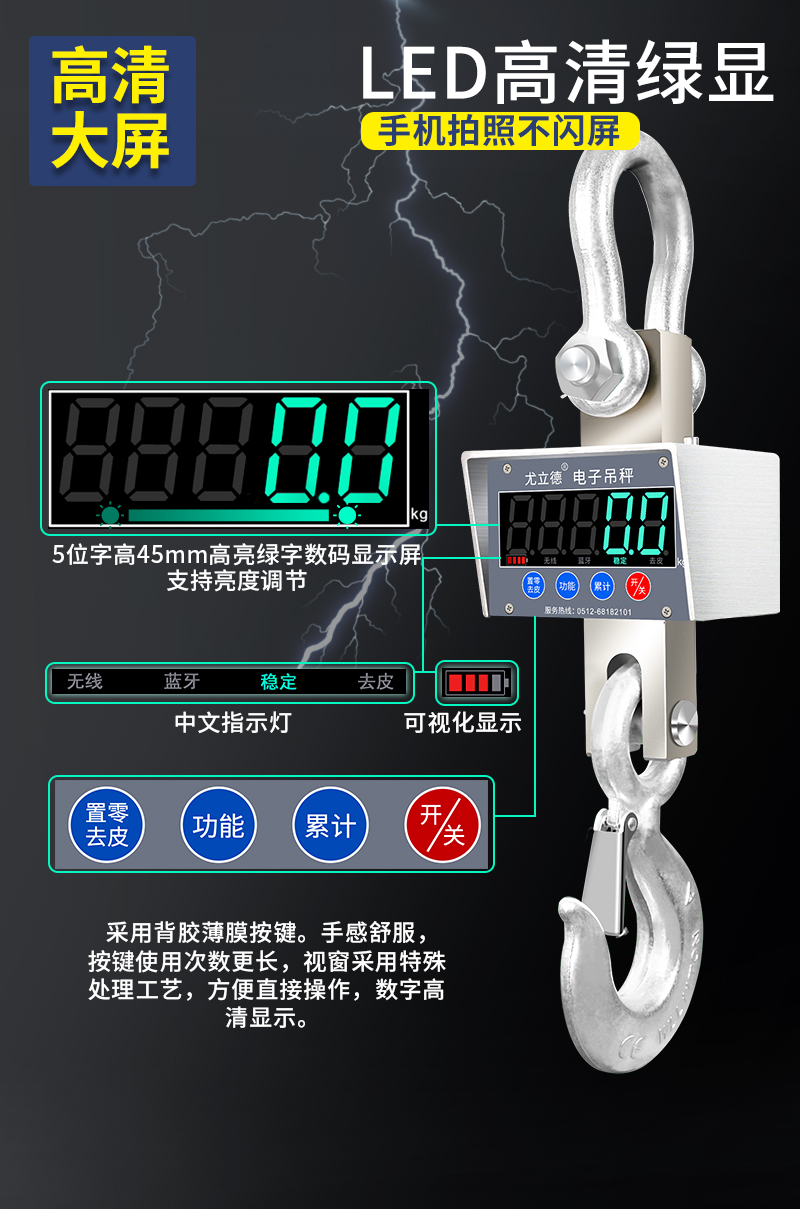 • 경량형[3톤] + 무선 핸드헬드/201 스테인레스 스틸 쉘/고휘도 녹색 문자/공장 직영