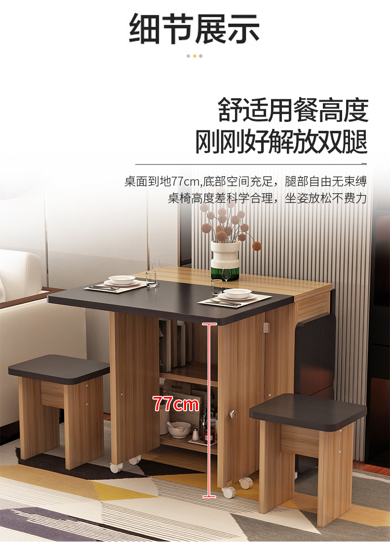 가정용 접이식 식탁 이동식 개폐식 직사각형 간단한 소형 다기능 테이블과 의자 조합 식탁스토어 가기