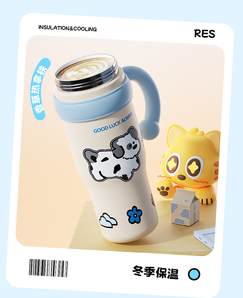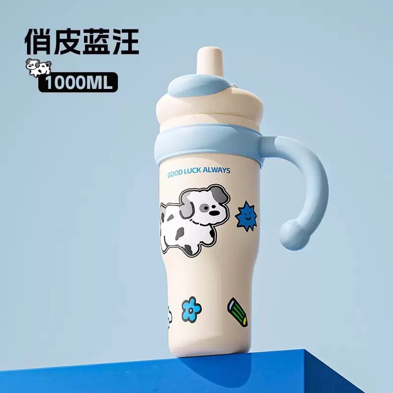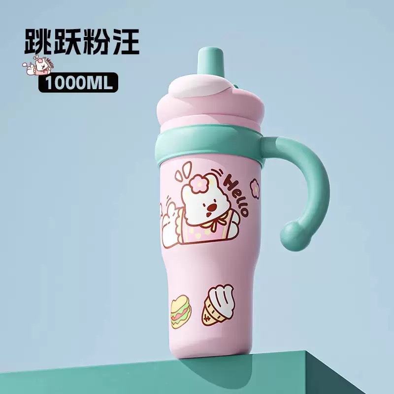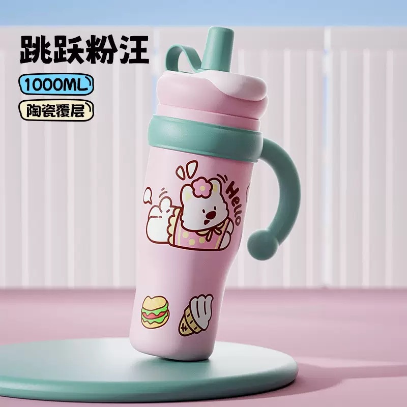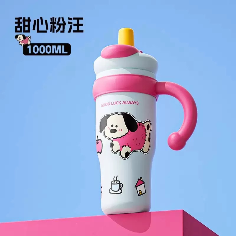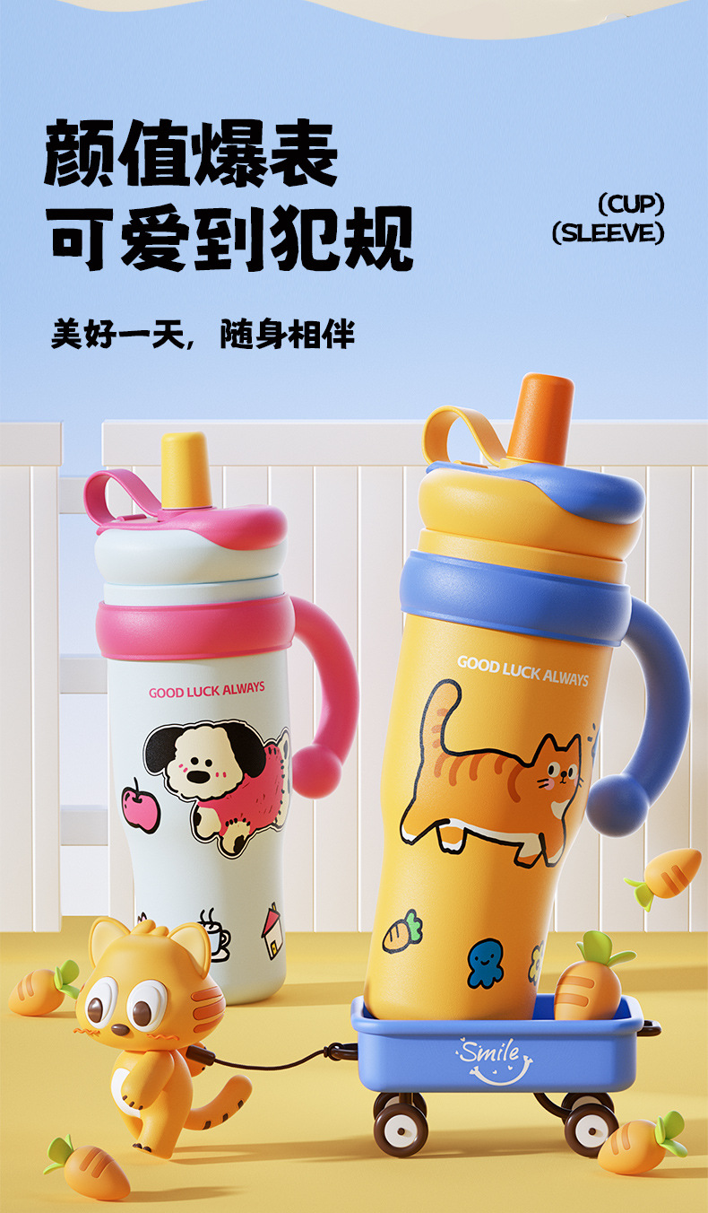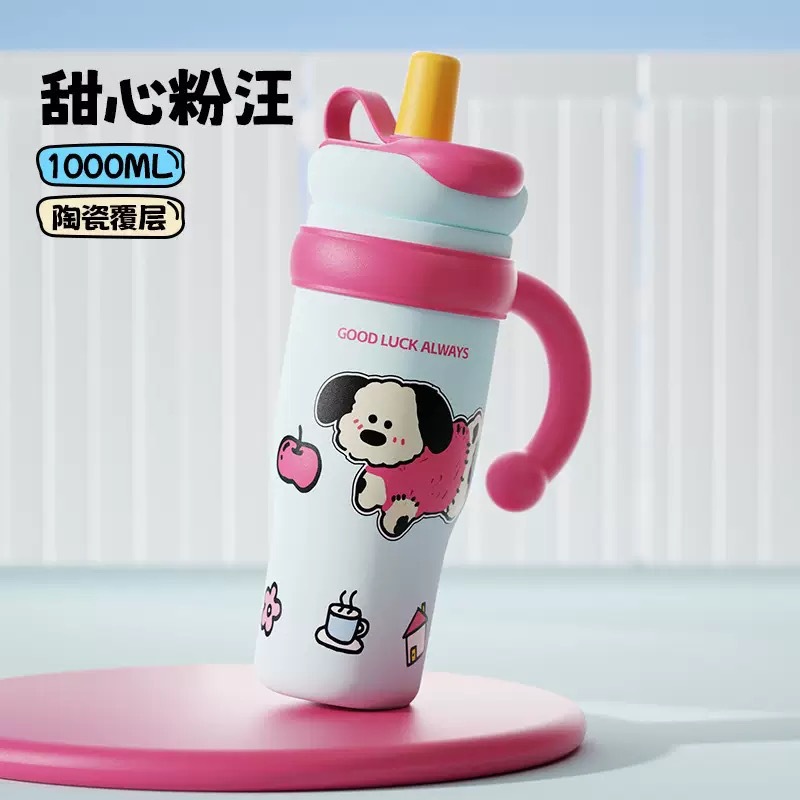 Ins 소녀들을 위한 고급스러운 스테인레스 스틸 보온병 컵, 귀여운 휴대용 아이스 컵, 직접 마시는 밀짚 컵, 크로스보더스토어 가기