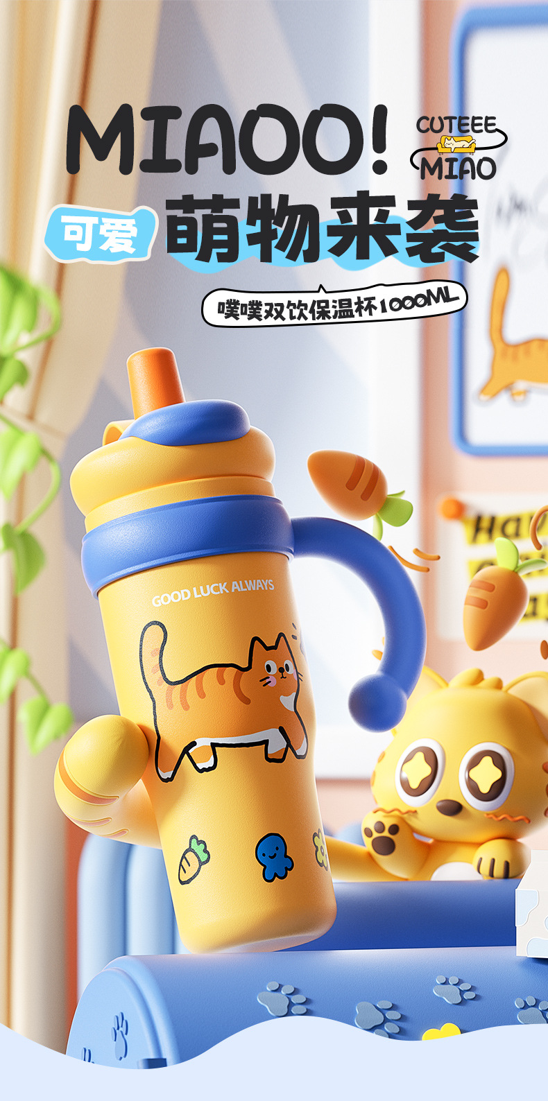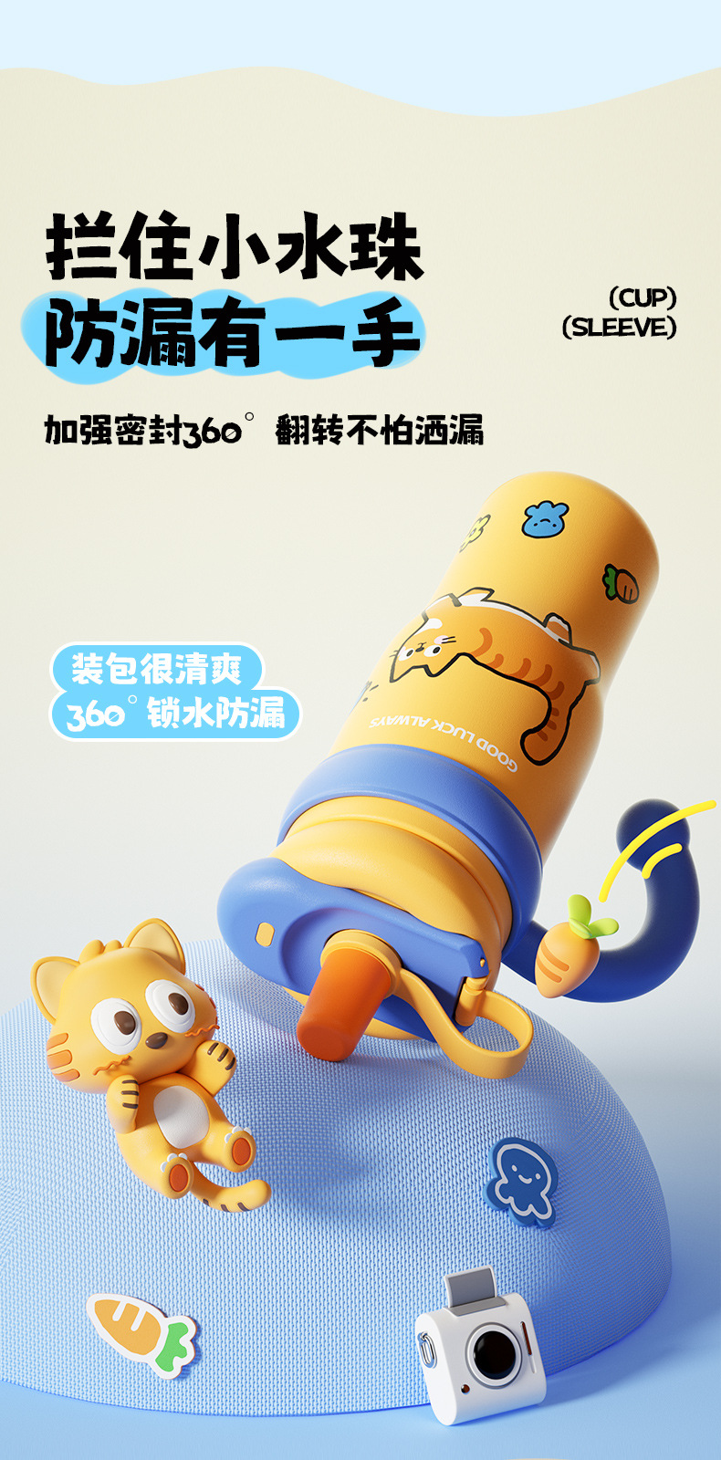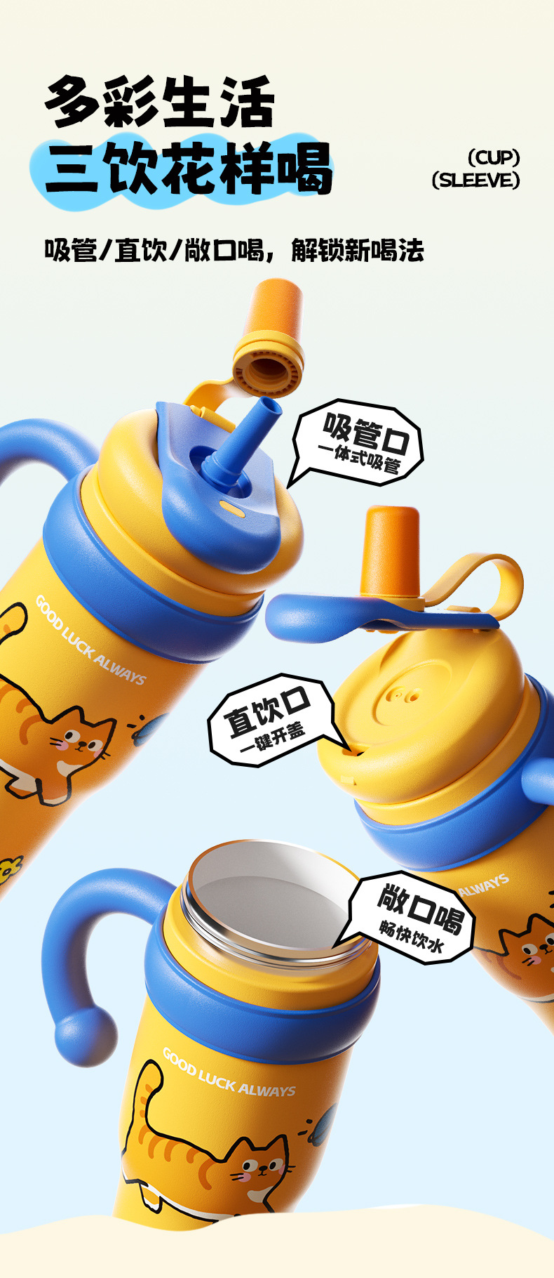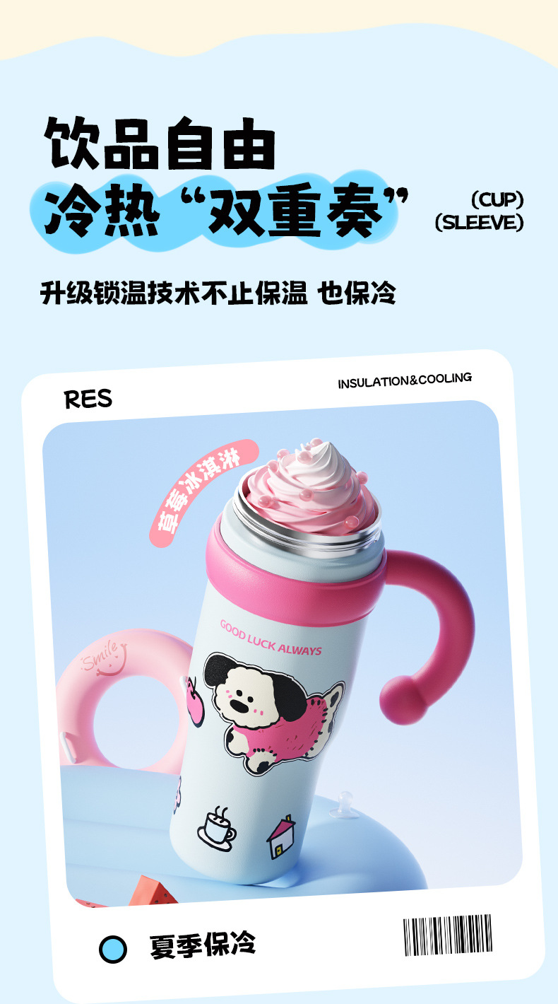Ins 소녀들을 위한 고급스러운 스테인레스 스틸 보온병 컵, 귀여운 휴대용 아이스 컵, 직접 마시는 밀짚 컵, 크로스보더스토어 가기