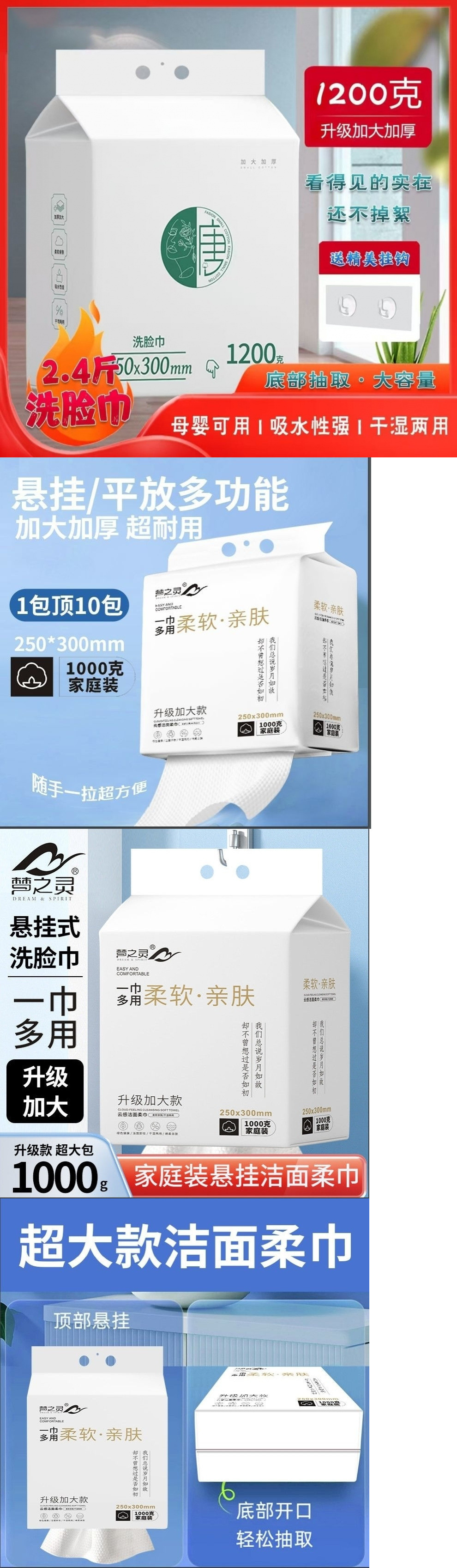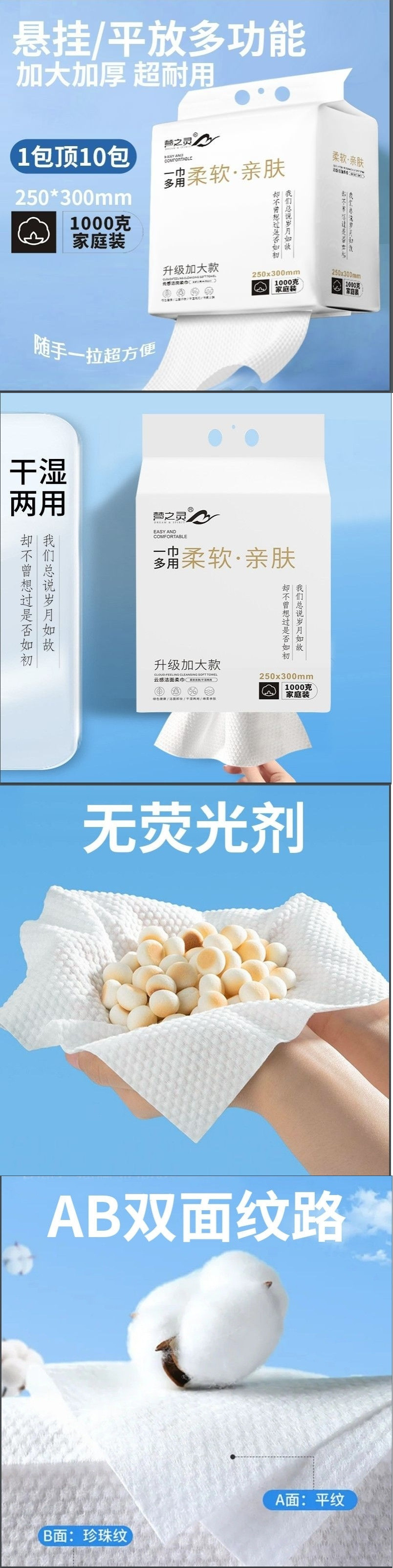 [두꺼운 대형 가방 걸이식 풀아웃 세안 수건, 습식 및 건식 일회용 면 부드러운 수건, 두꺼운 노반스토어 가기