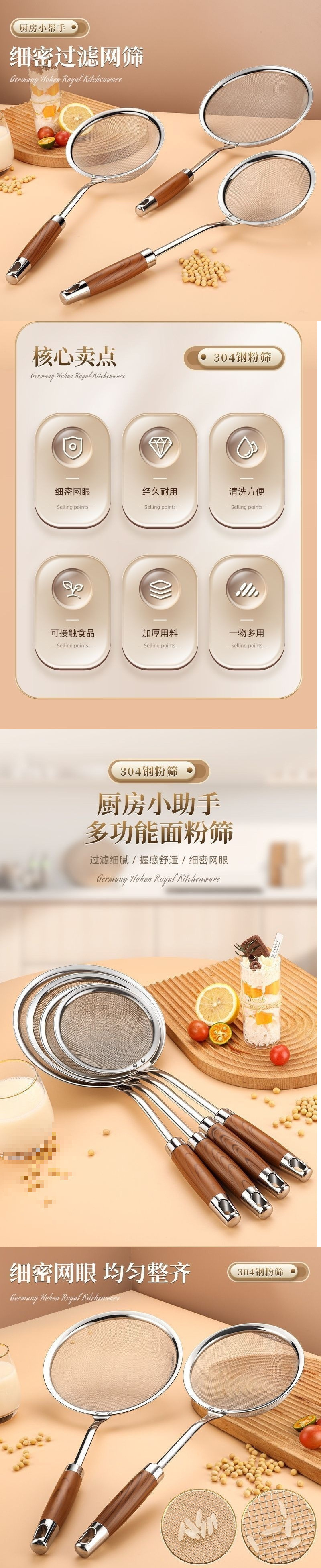 • 304 스테인리스 소쿠리 [나뭇결 손잡이 30 메쉬 18 대]