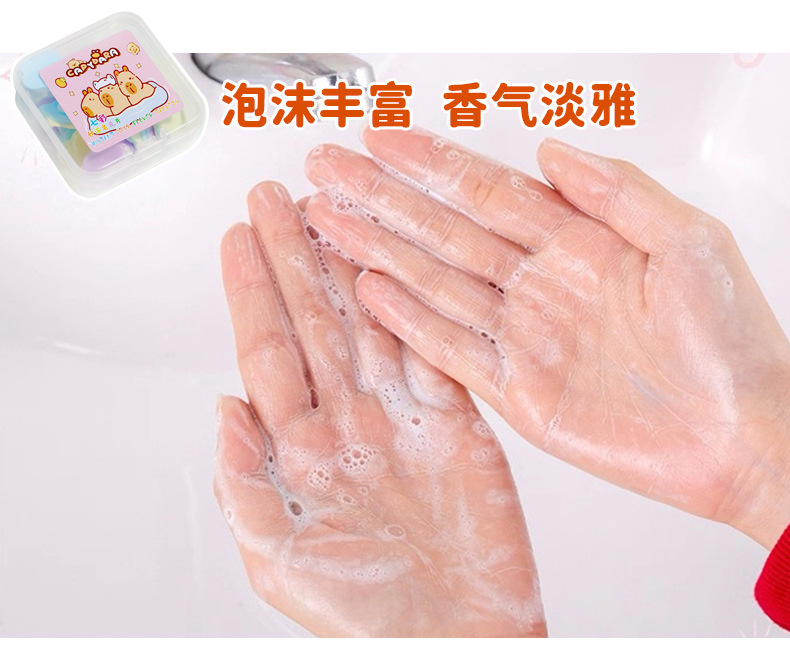 귀여운 미니 카피바라 작은 사각형 상자 손 씻기 시트 매직 꽃잎 비누 시트 휴대용 손 씻기 비누 종이