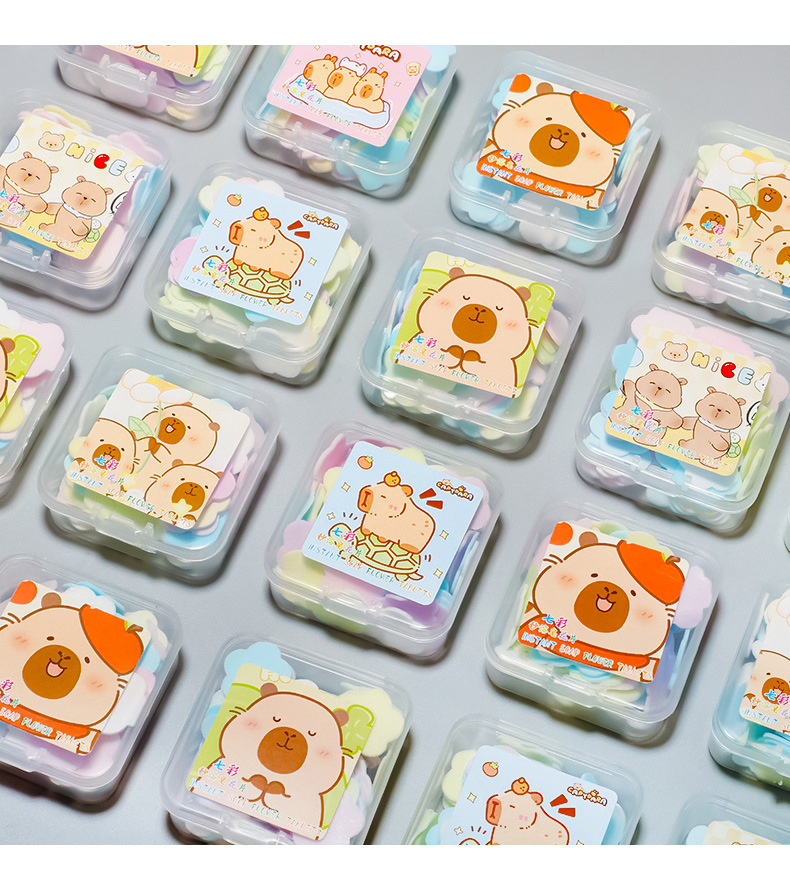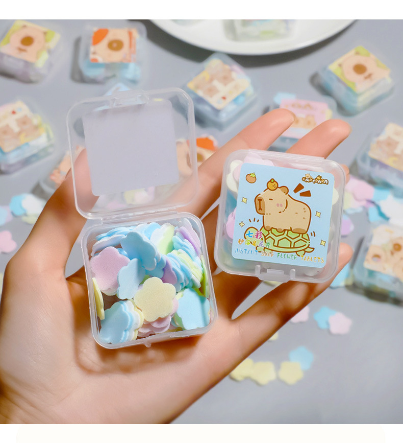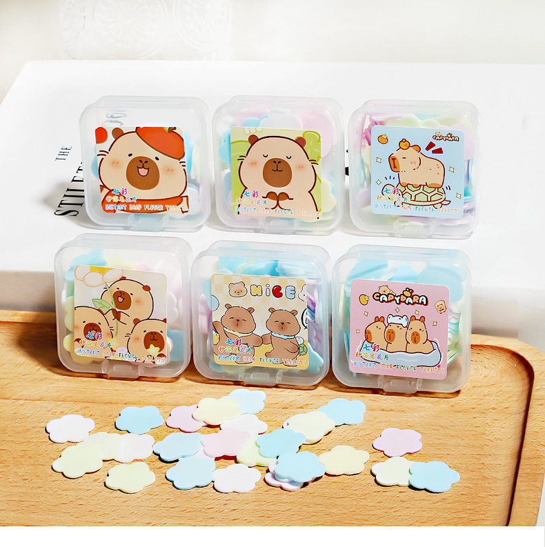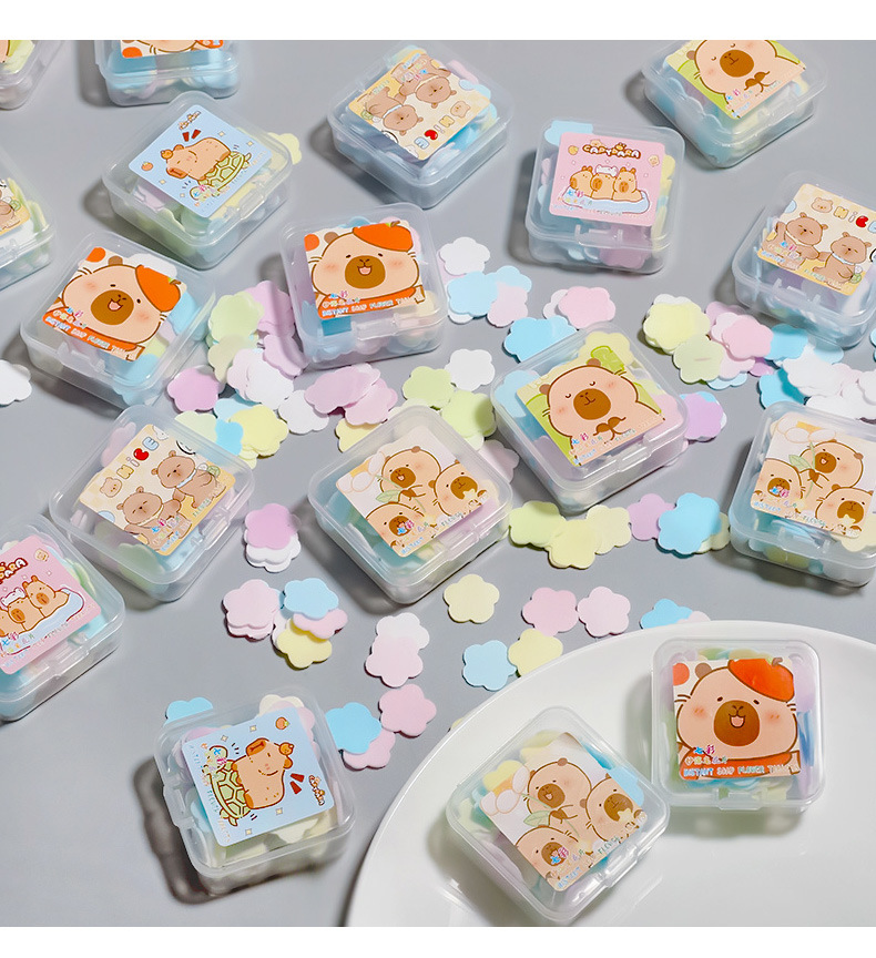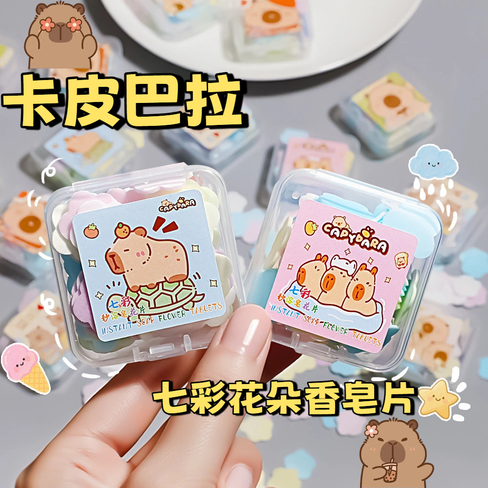 귀여운 미니 카피바라 작은 사각형 상자 손 씻기 시트 매직 꽃잎 비누 시트 휴대용 손 씻기 비누 종이스토어 가기
