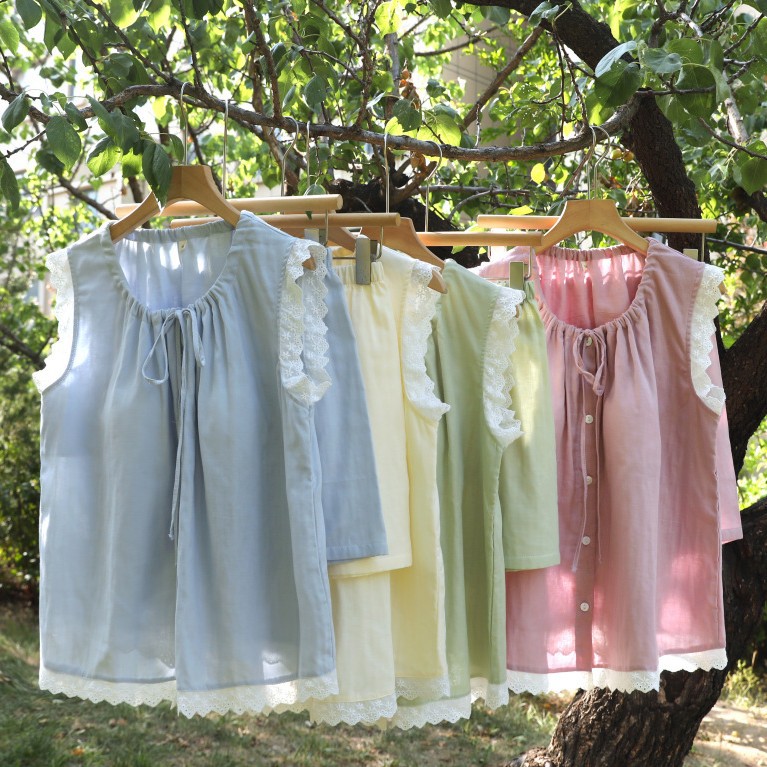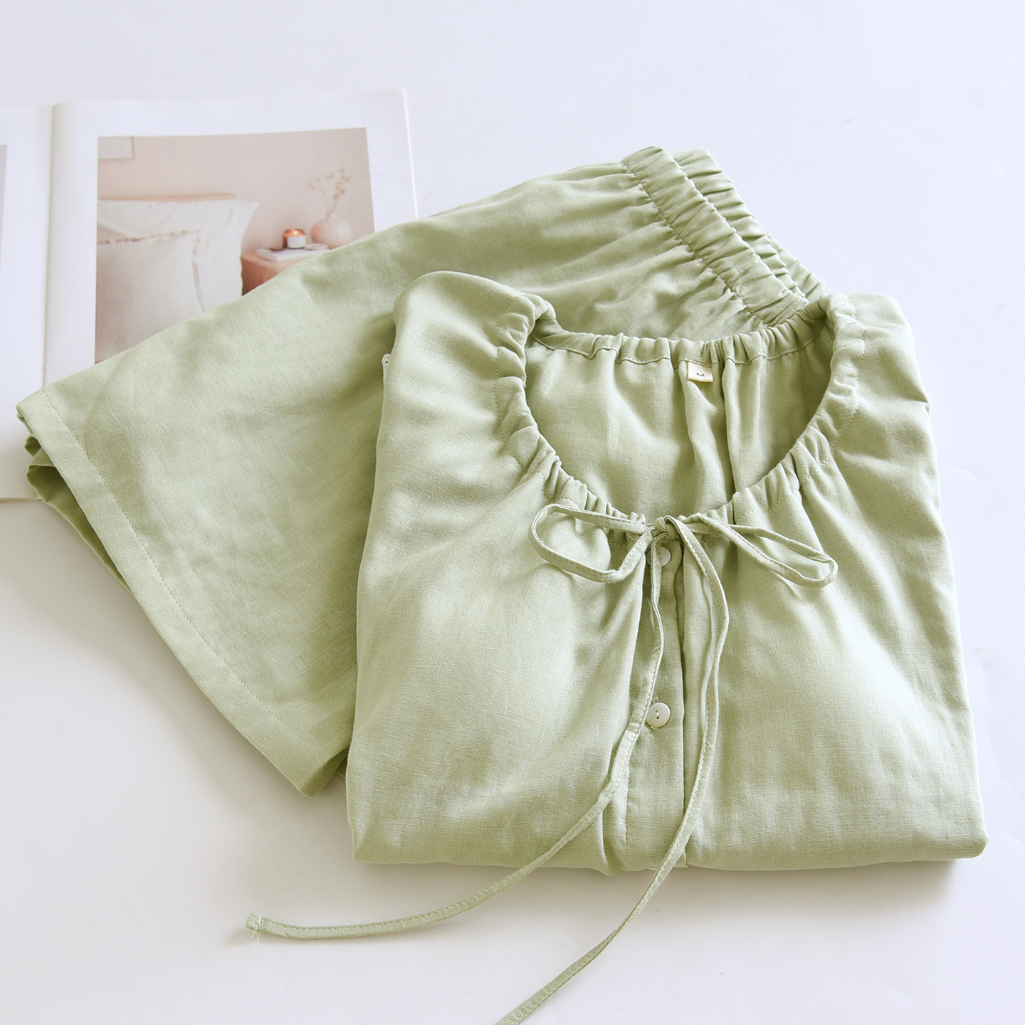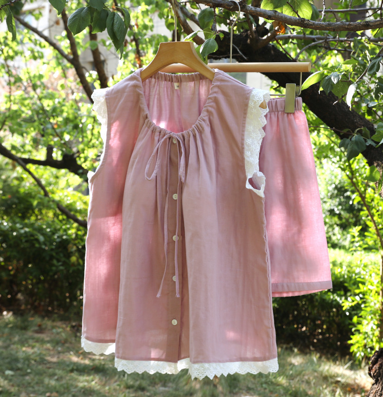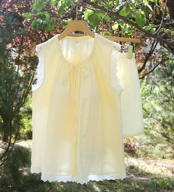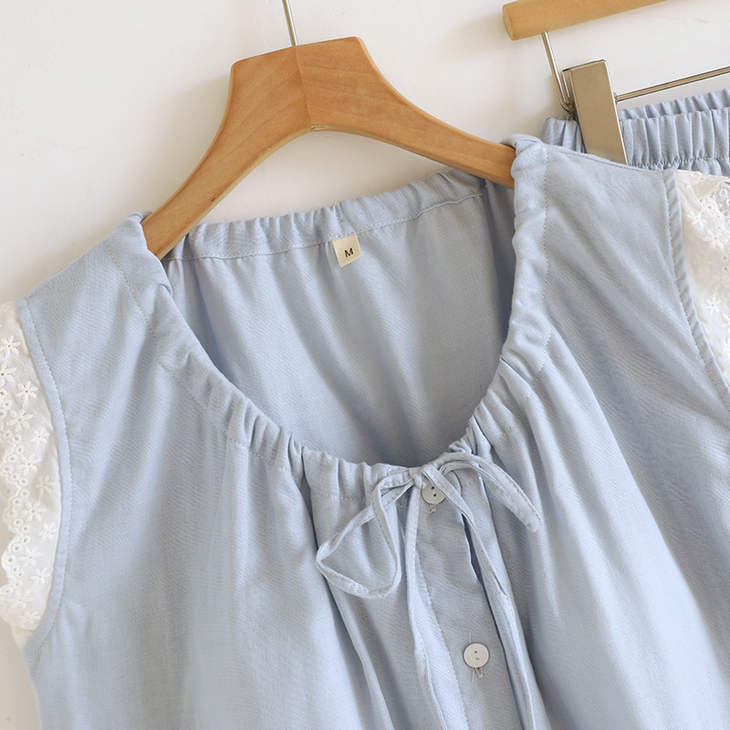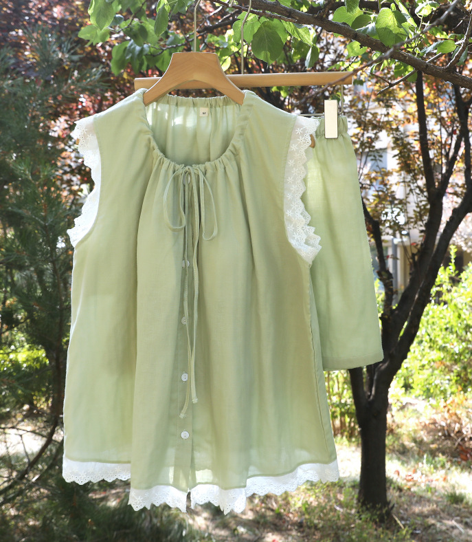 심플한 솔리드 컬러 라운드 넥 조절 가능한 레이스 반팔 반바지 루즈 캐주얼 슈트 여성 봄 여름 홈웨어 외부 착용 가능스토어 가기