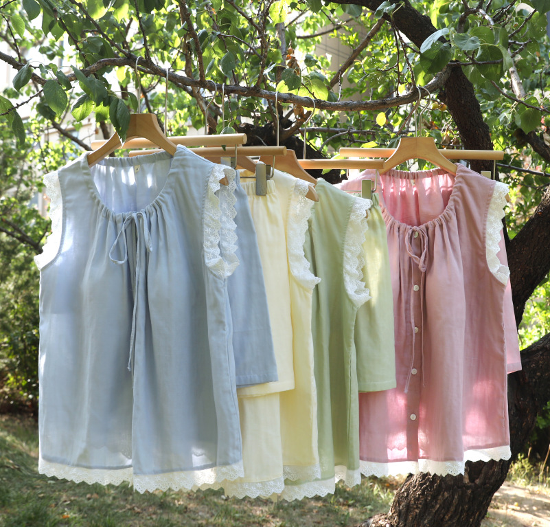 심플한 솔리드 컬러 라운드 넥 조절 가능한 레이스 반팔 반바지 루즈 캐주얼 슈트 여성 봄 여름 홈웨어 외부 착용 가능