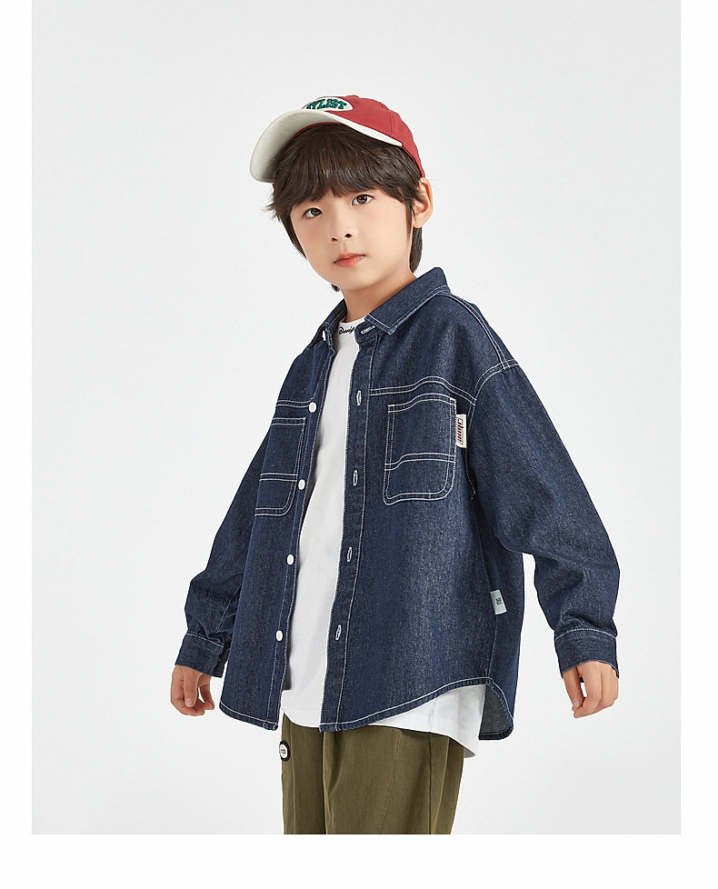 남아 가을 얇은 재킷, 봄 가을 스타일 2026 신상 아동 데님 셔츠, 큰아이들을 위한 트렌디한 상의, 스트릿 패션스토어 가기