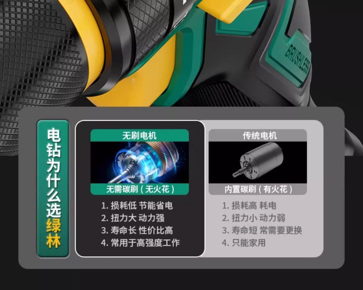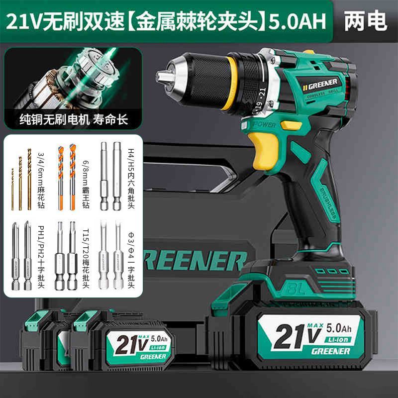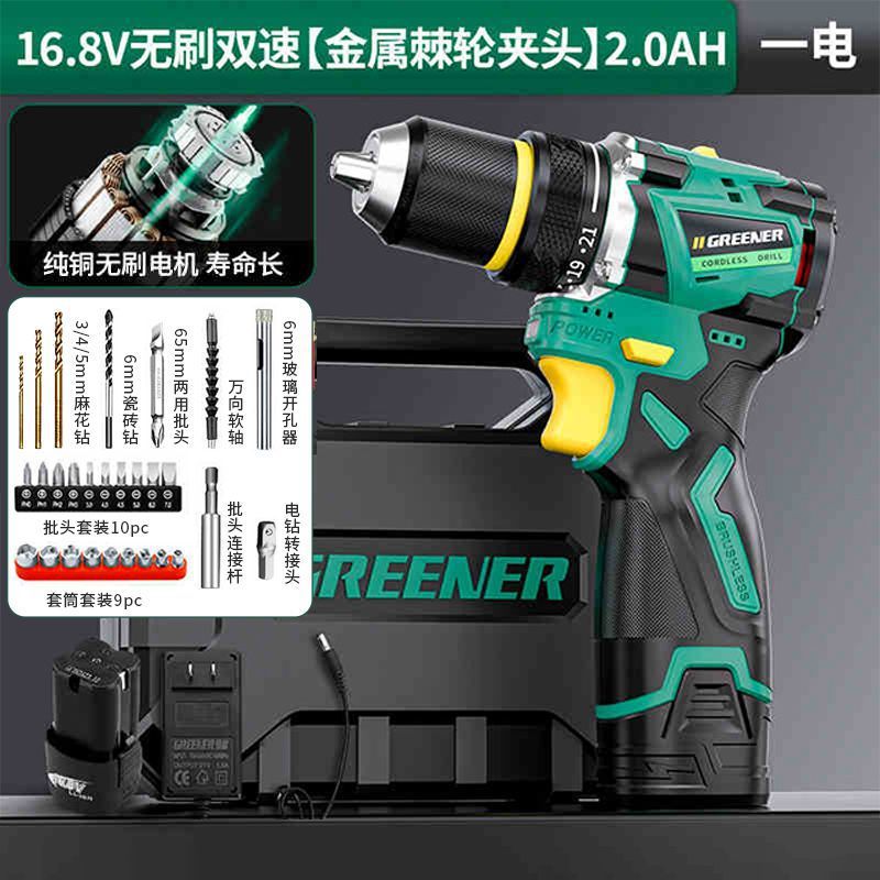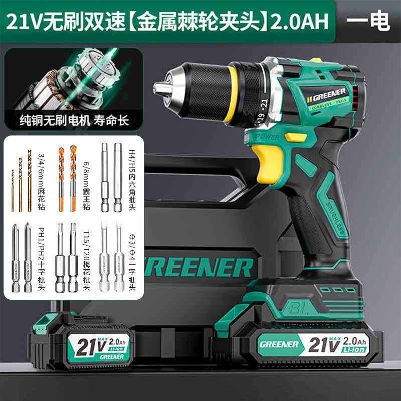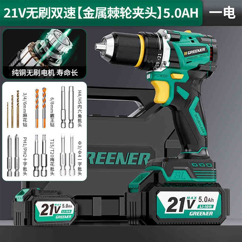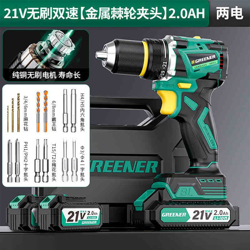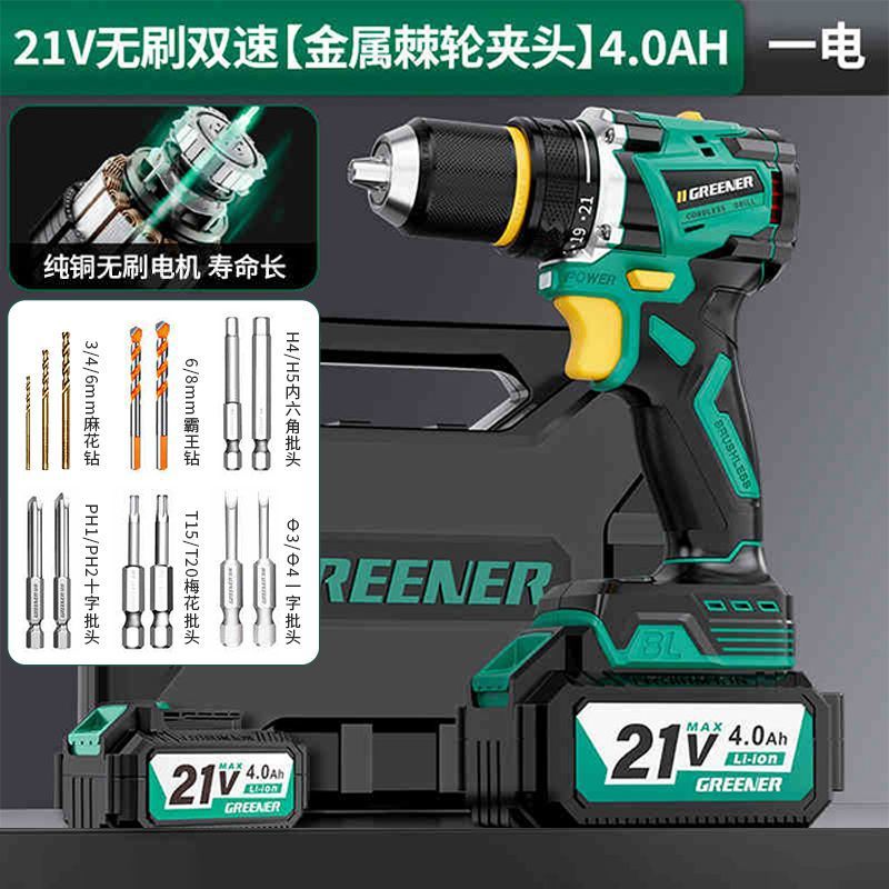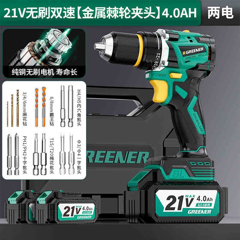 가정용 벽 파기용 그린 포레스트 브러시리스 핸드 드릴 리튬 배터리 권총 드릴 다기능 임팩트 펀칭 충전식 고출력스토어 가기