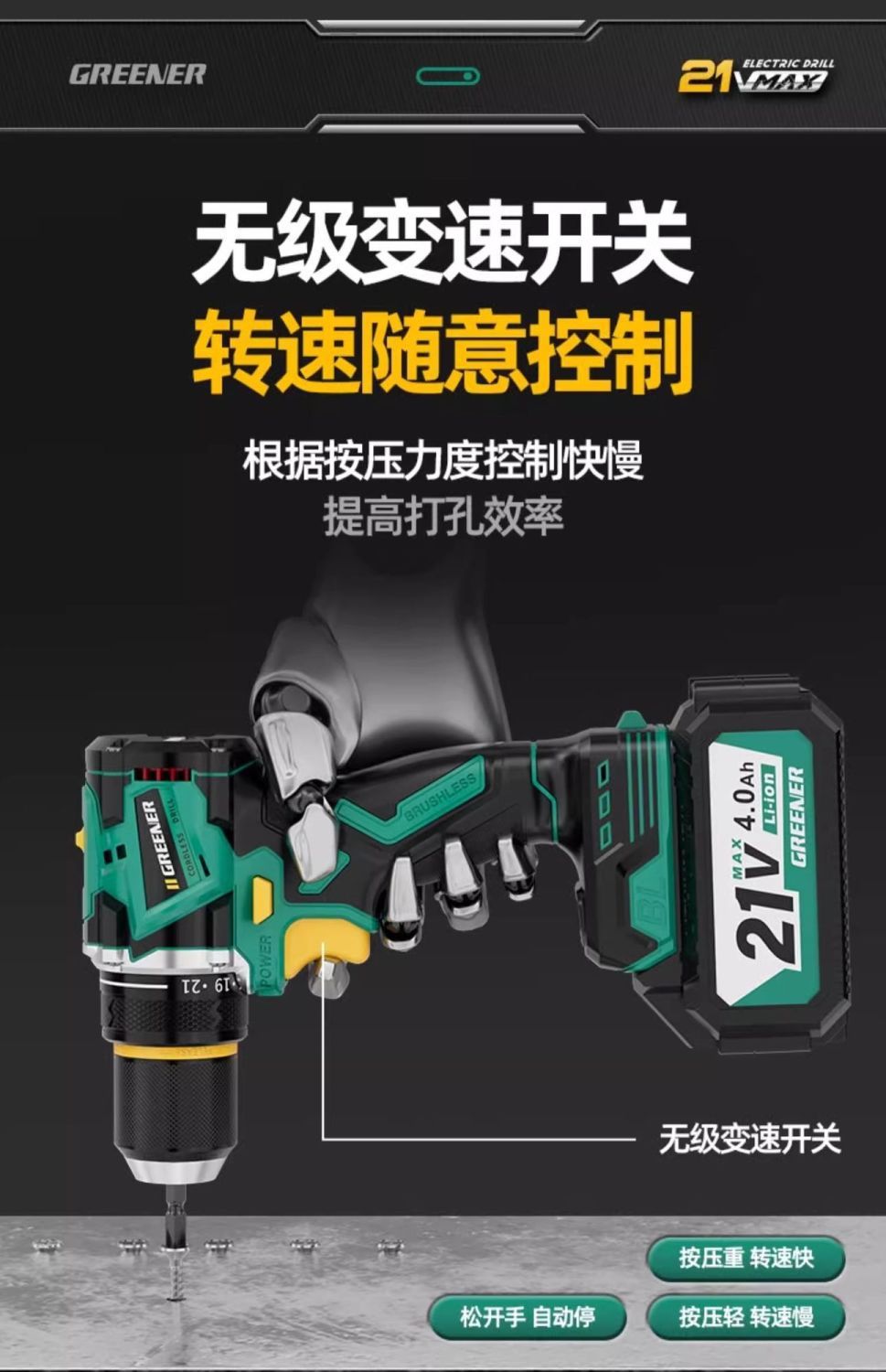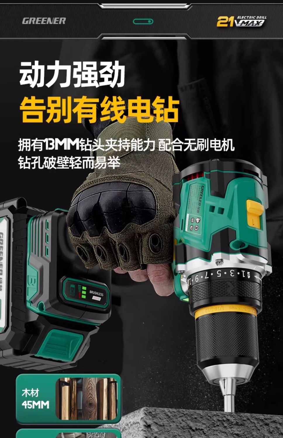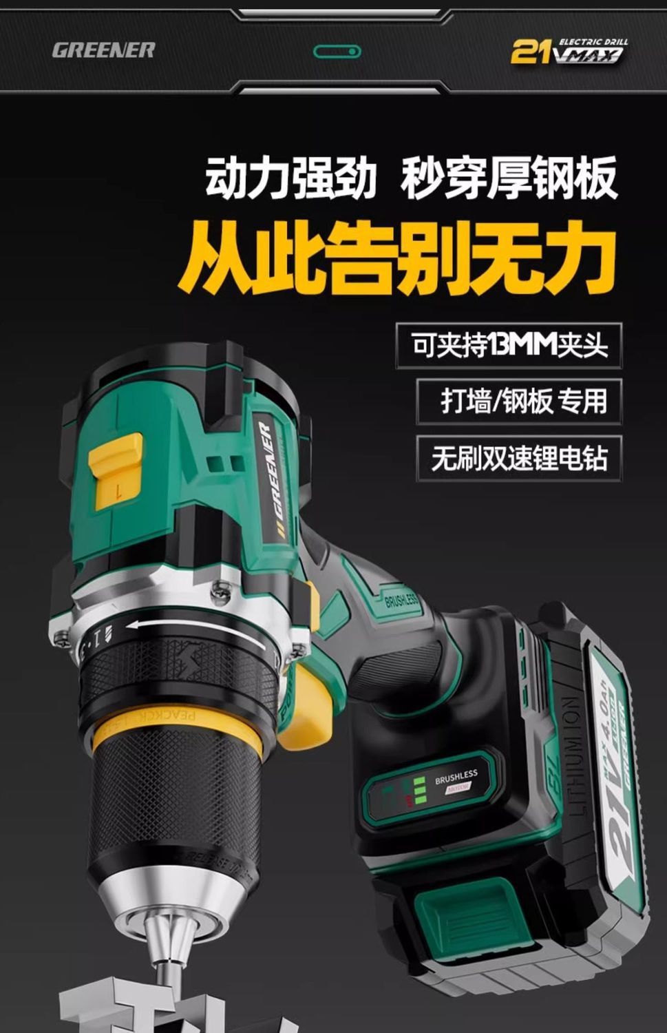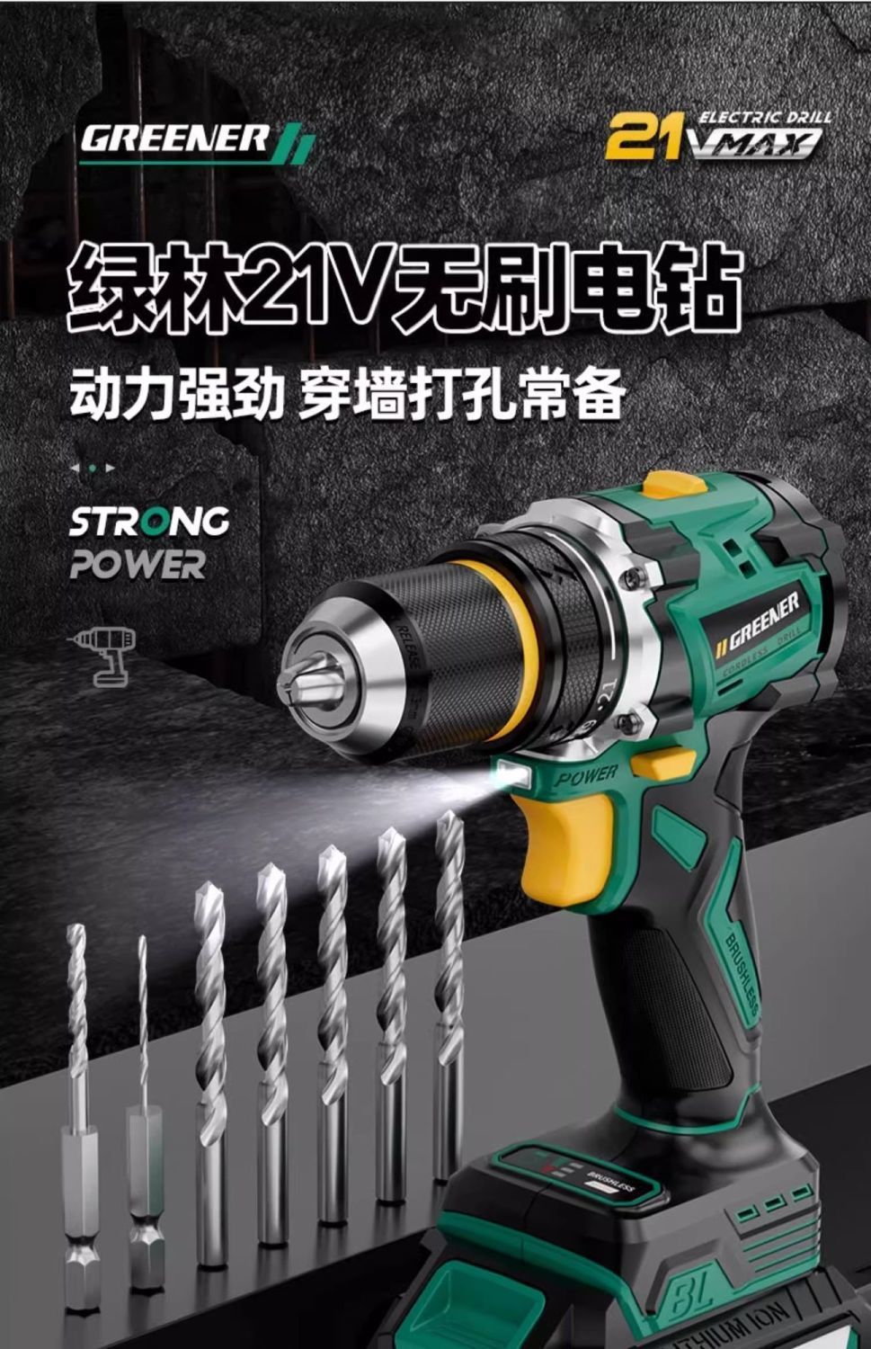 가정용 벽 파기용 그린 포레스트 브러시리스 핸드 드릴 리튬 배터리 권총 드릴 다기능 임팩트 펀칭 충전식 고출력스토어 가기