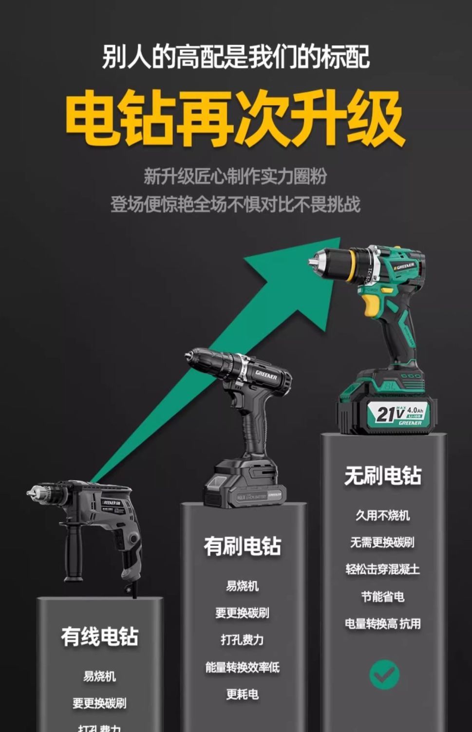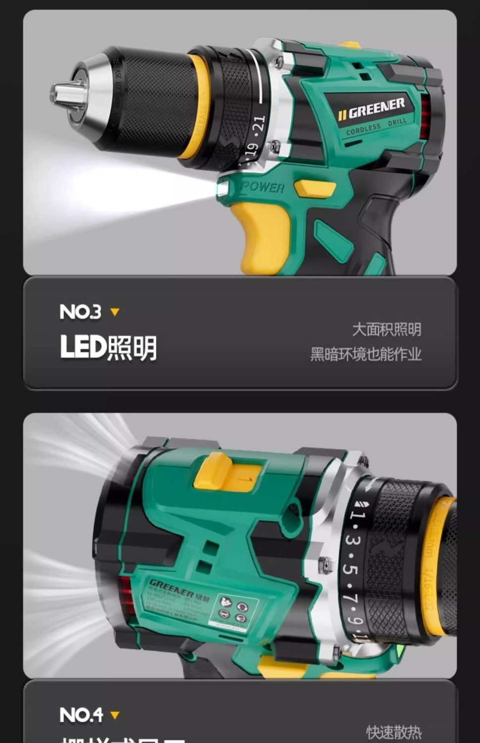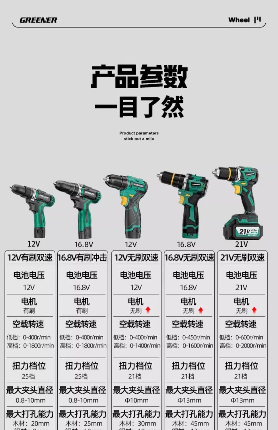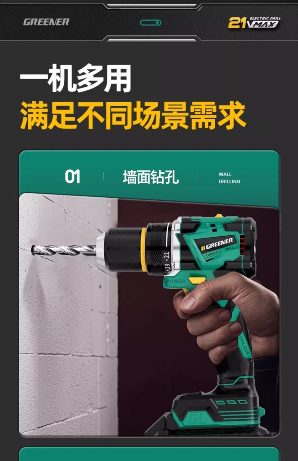 가정용 벽 파기용 그린 포레스트 브러시리스 핸드 드릴 리튬 배터리 권총 드릴 다기능 임팩트 펀칭 충전식 고출력스토어 가기