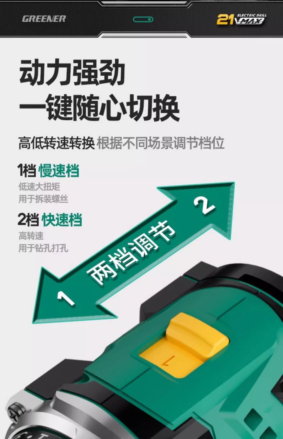 • 21V 브러시리스 배속 2.0AH 전동 + 드릴 13개 세트