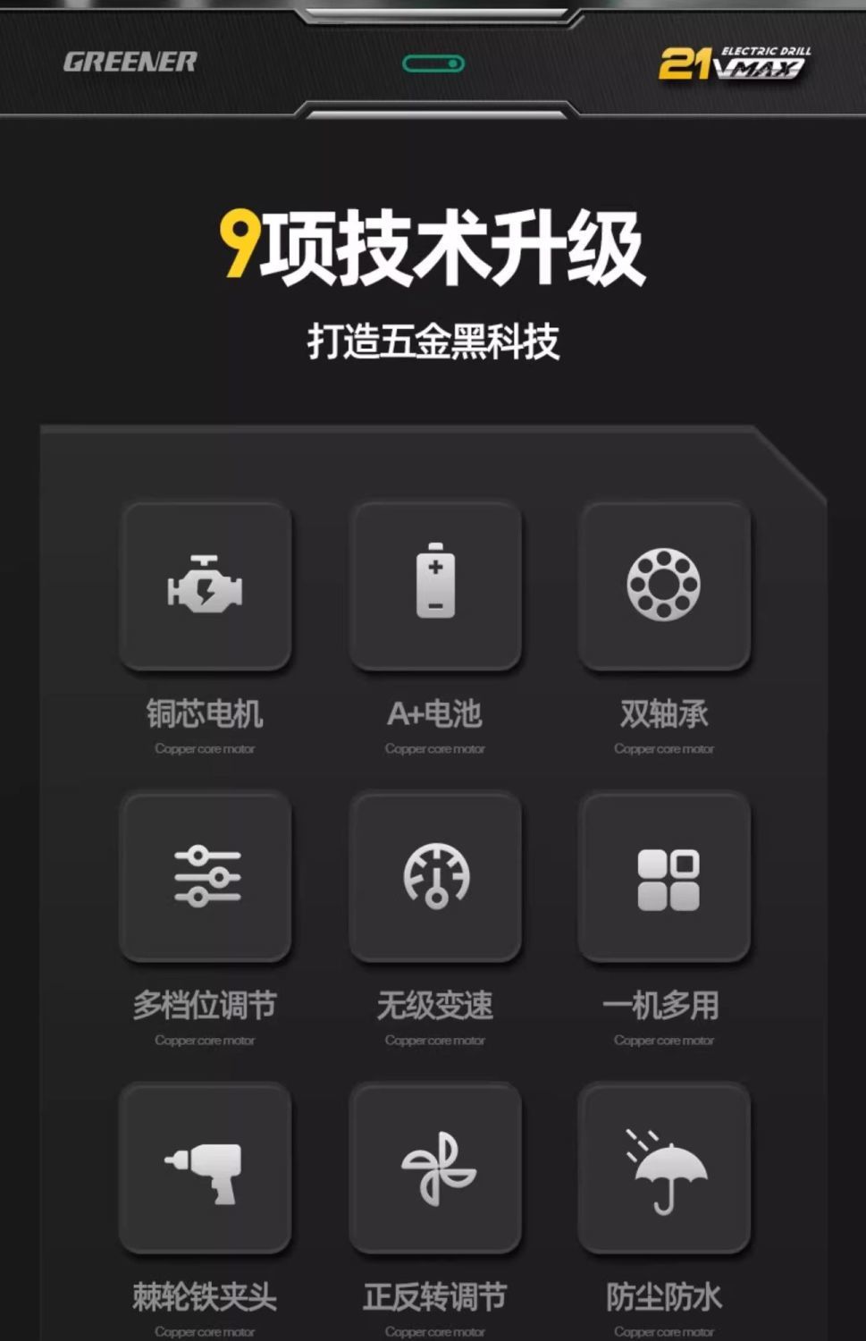 • 21V 브러시리스 배속 5.0AH 배터리 2개 + 드릴 13개 세트