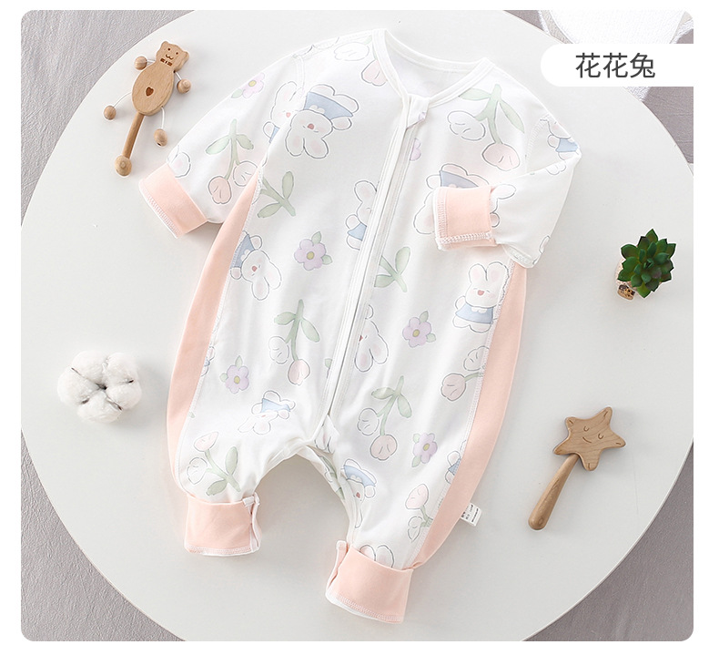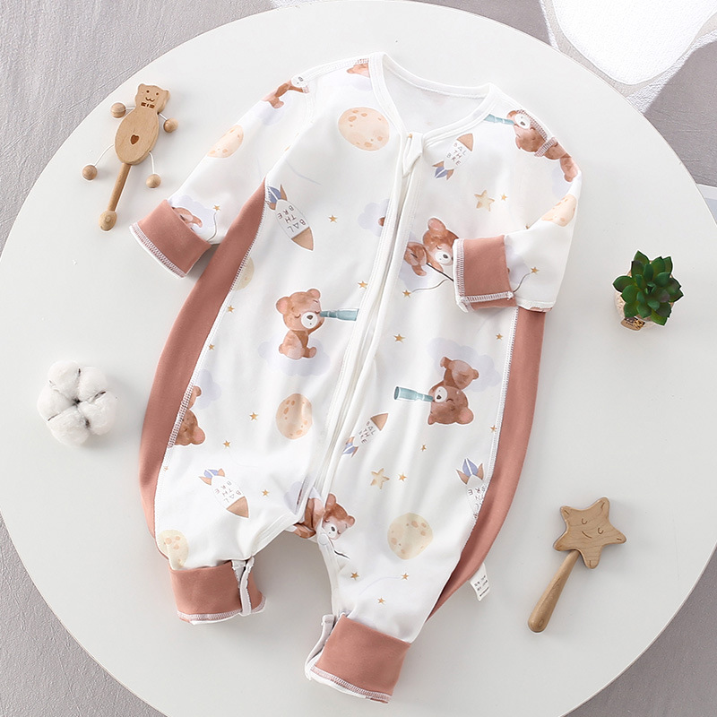 아기 침낭 봄과 가을 순면 남성과 여성 아기 일체형 침낭 아기 옷 스타일 분할 다리 침낭 가을 감기 예방