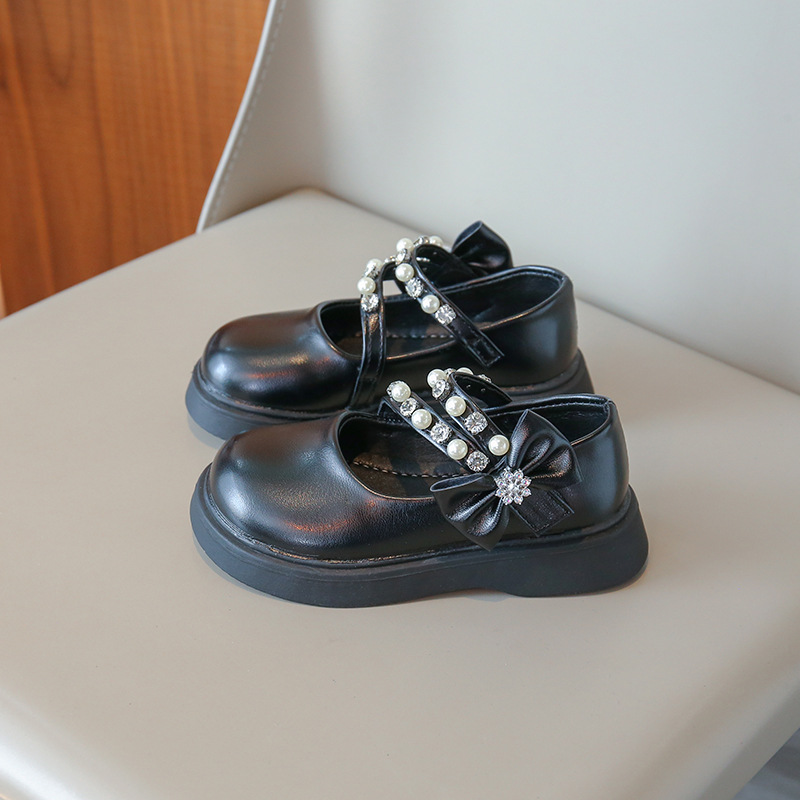 2025 새로운 가을 어린이 신발 한국어 버전 진주 활 메리 제인 스퀘어 가죽 신발 소녀 퍼포먼스 신발