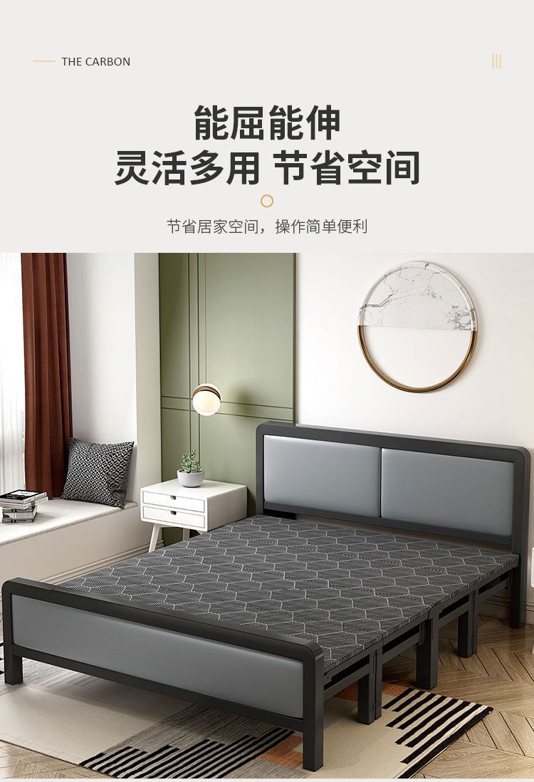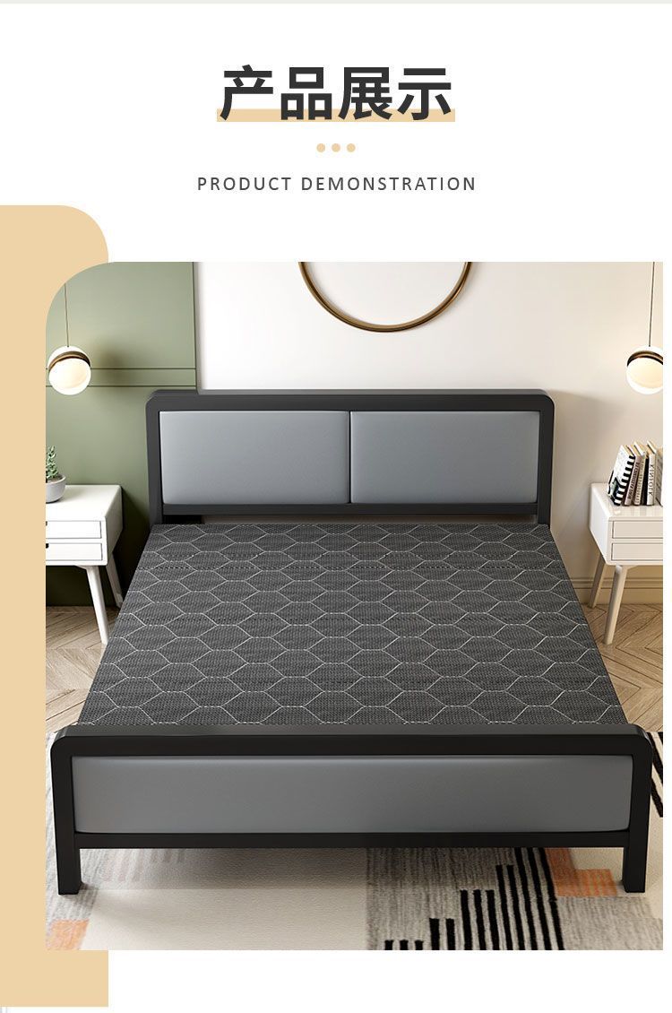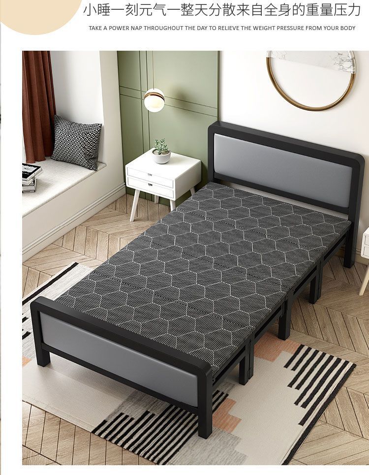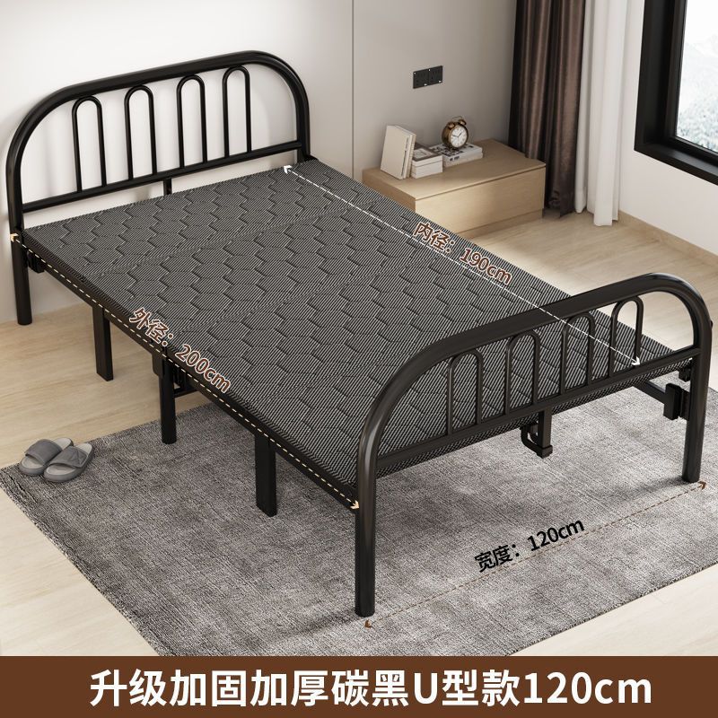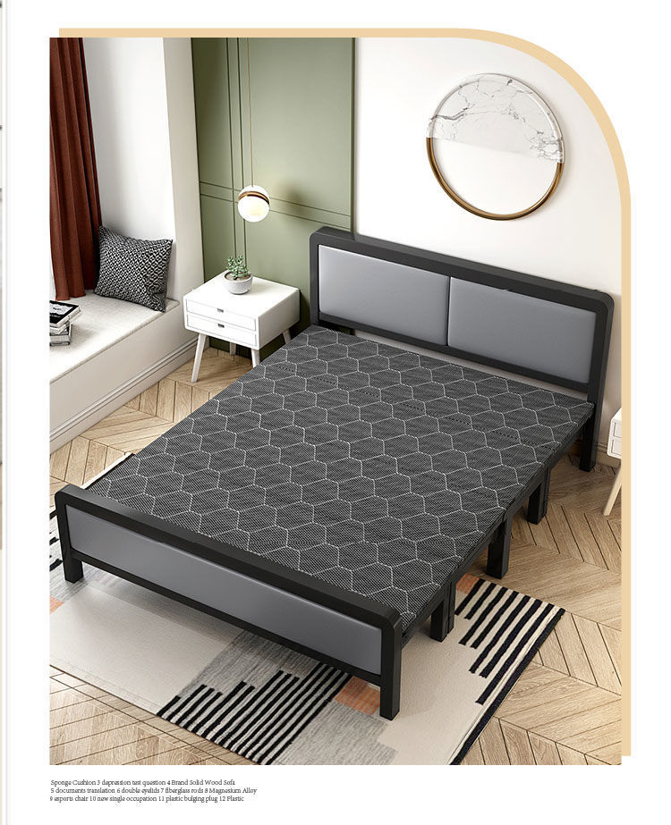 철제 프레임 하드보드 침대 접이식 침대 가정용 더블 성인 싱글 점심 시간 두꺼워지고 강화된 임대 주택은 튼튼하고 내구성이 뛰어납니다.스토어 가기