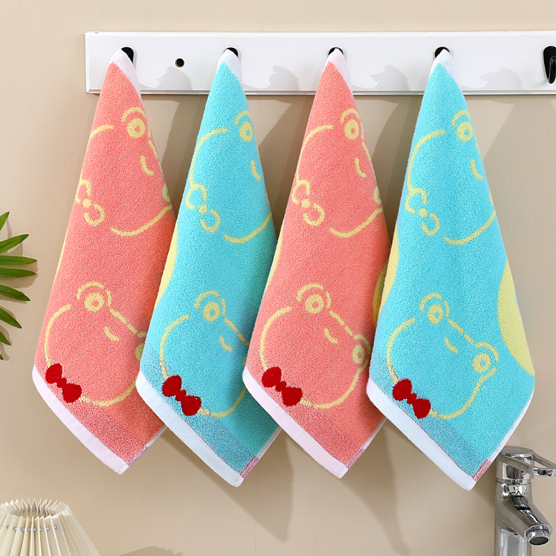 순수 면사 염색 어린이 수건 자카드 사각형 수건 도매 부드러운 흡수성 비 페이딩 가정용 슈퍼마켓 선물 작은 수건