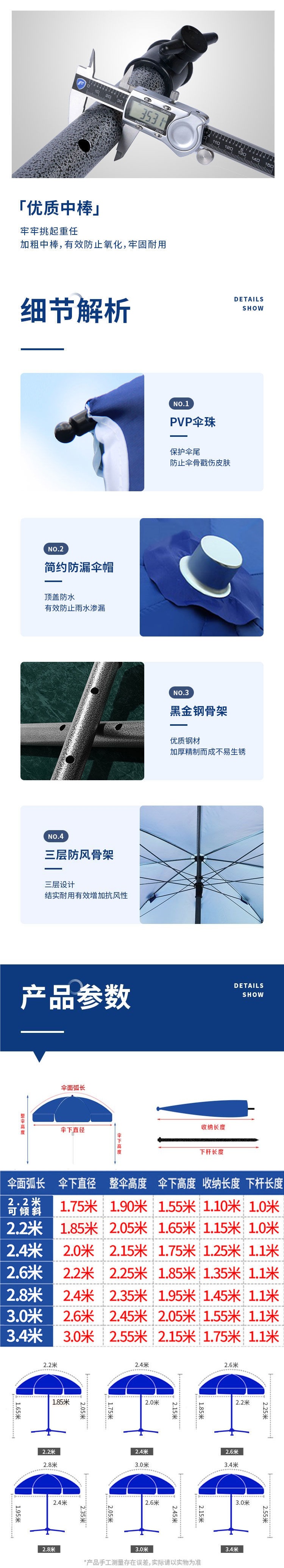• 3.0m 파란색 + 두꺼운 우산 꽂이 + 이중 두꺼운 천