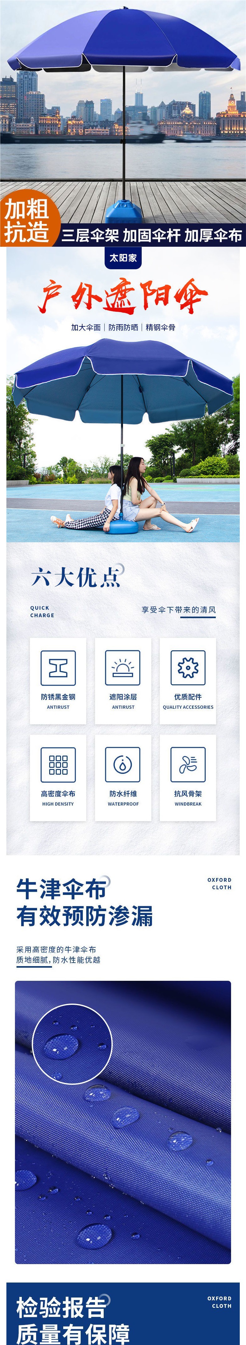 • 2.6m 파란색 + 3겹 우산 꽂이 + 이중 두꺼운 천