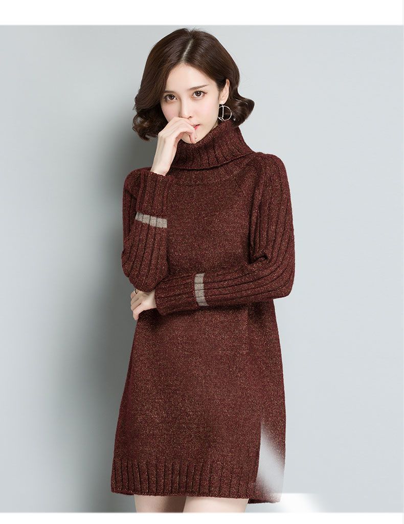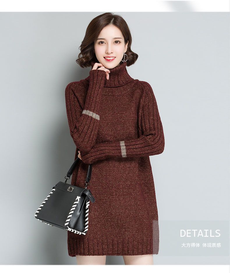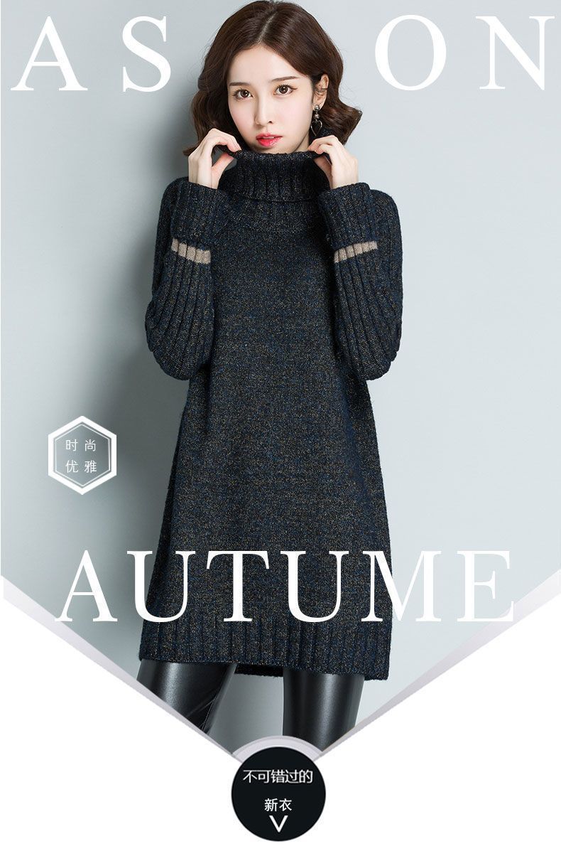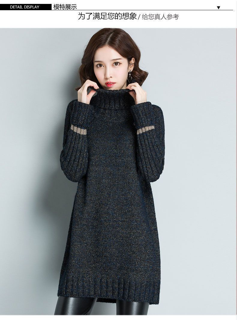 가을 겨울 여성용 하이 넥 풀오버 스웨터 새로운 한국 스타일 느슨한 중간 길이 두꺼운 니트 따뜻한 기본 셔츠 탑 유행스토어 가기