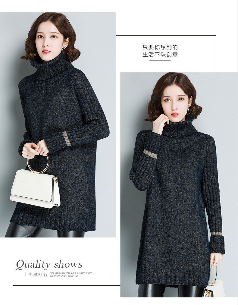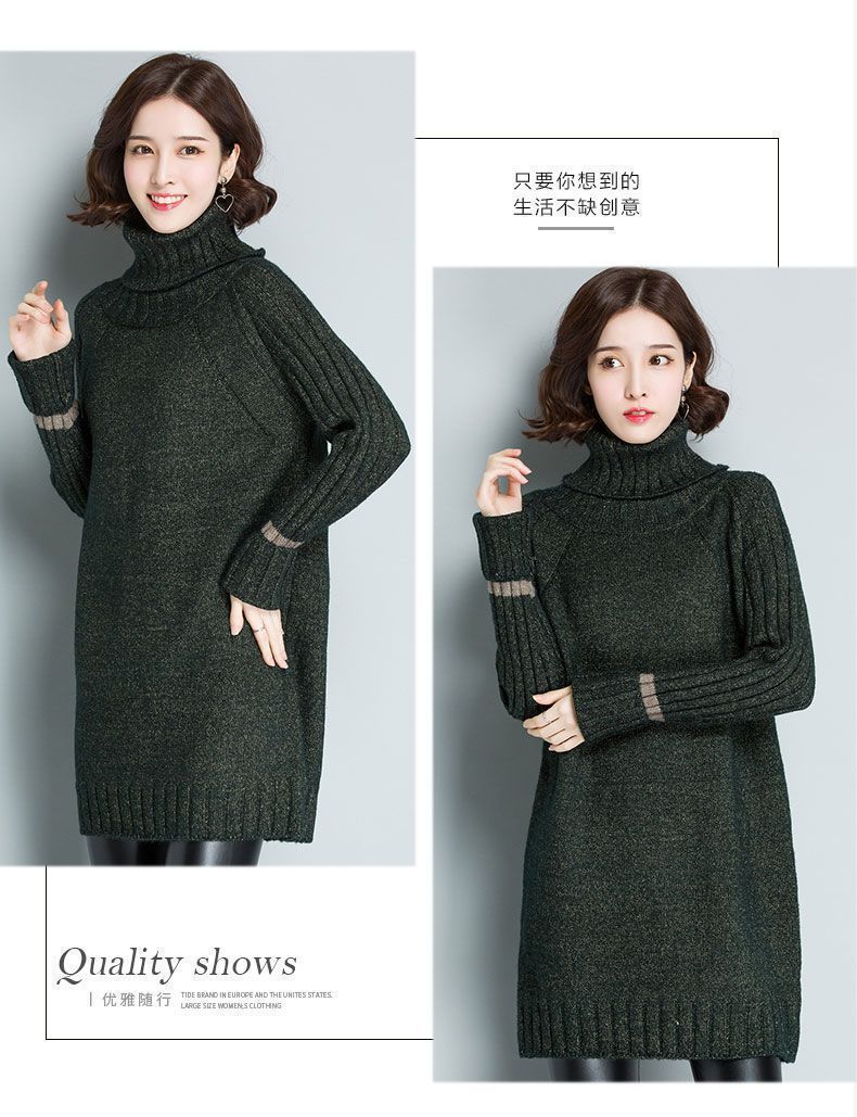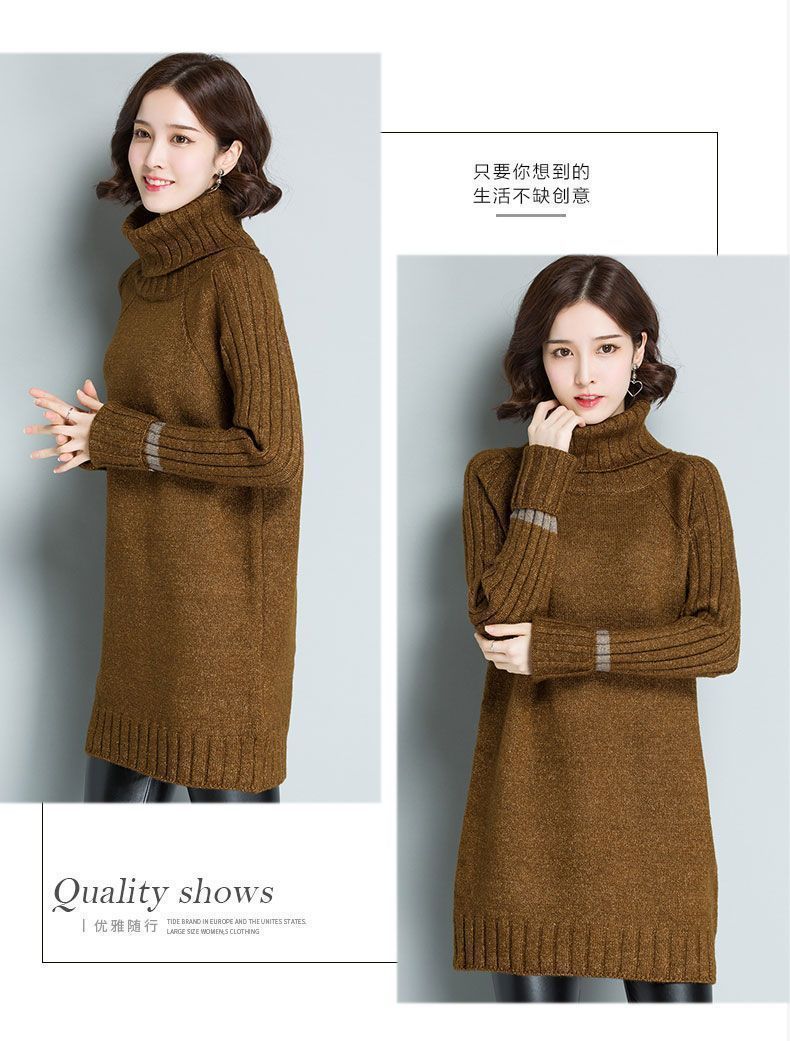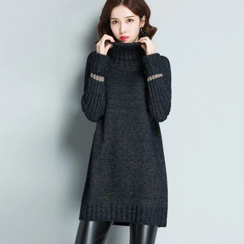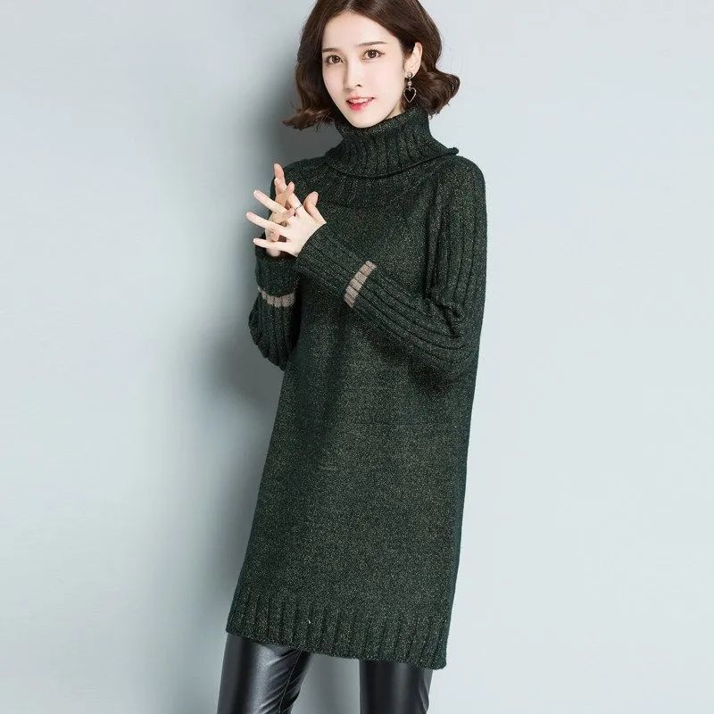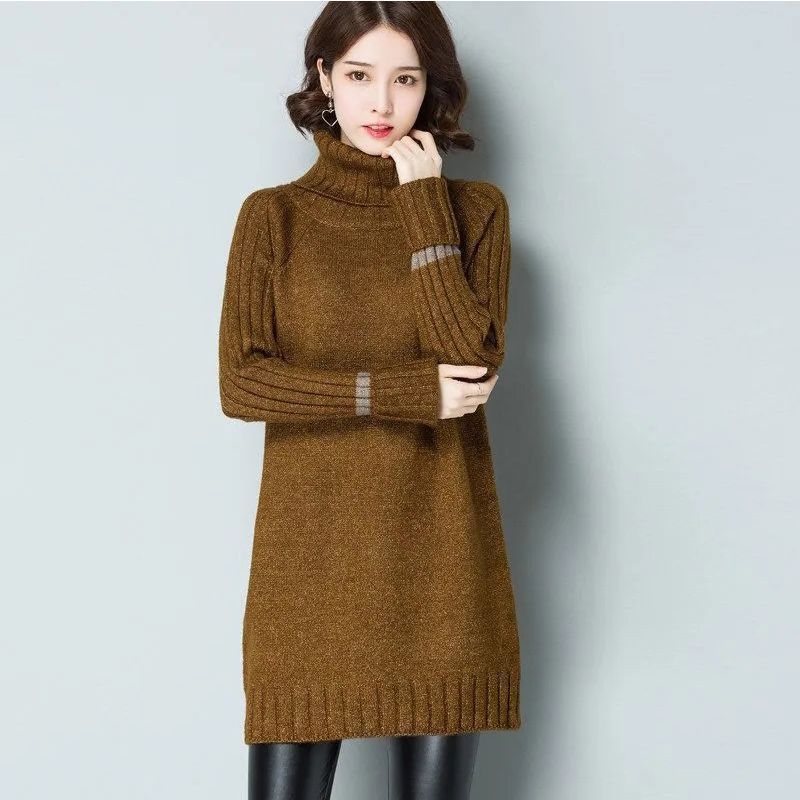 가을 겨울 여성용 하이 넥 풀오버 스웨터 새로운 한국 스타일 느슨한 중간 길이 두꺼운 니트 따뜻한 기본 셔츠 탑 유행