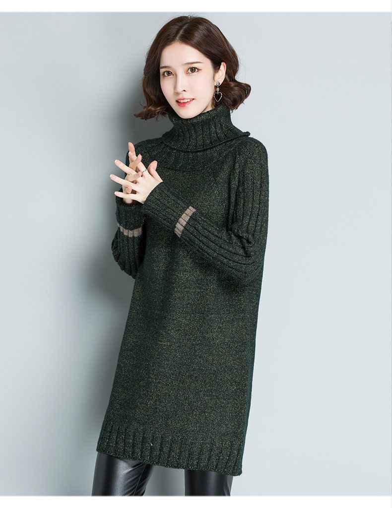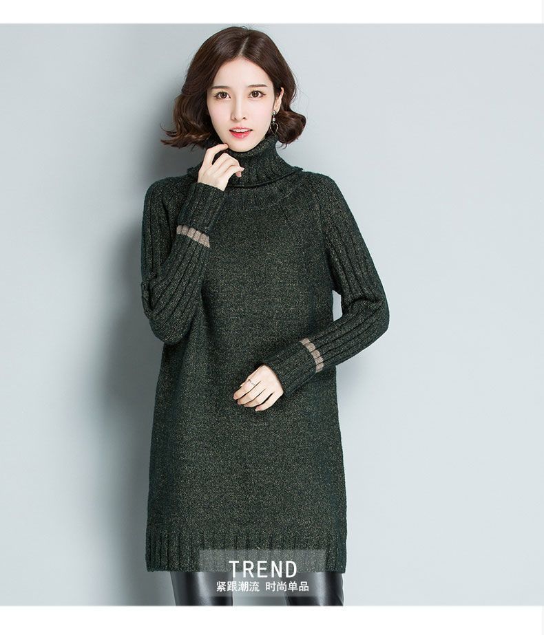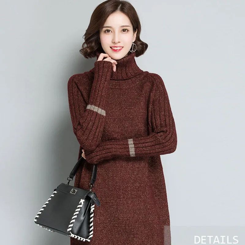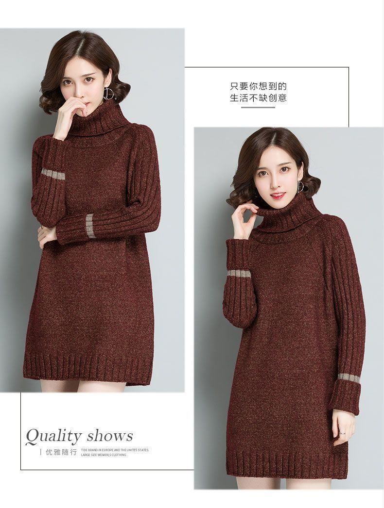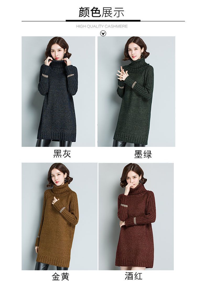 가을 겨울 여성용 하이 넥 풀오버 스웨터 새로운 한국 스타일 느슨한 중간 길이 두꺼운 니트 따뜻한 기본 셔츠 탑 유행