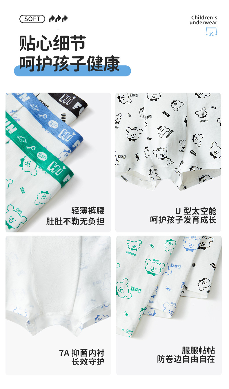 어린이 속옷 순수 코튼 만화 귀여운 인쇄 맞춤형 유행 항균 청소년 복서 반바지 3 팩스토어 가기