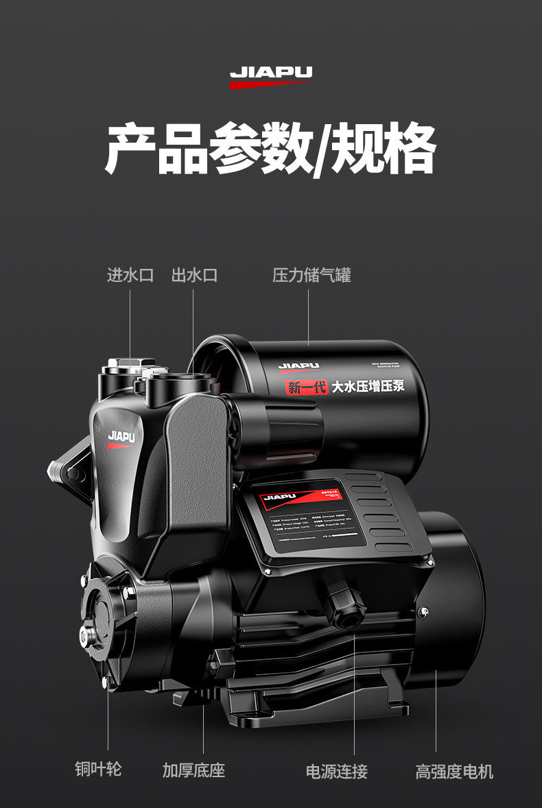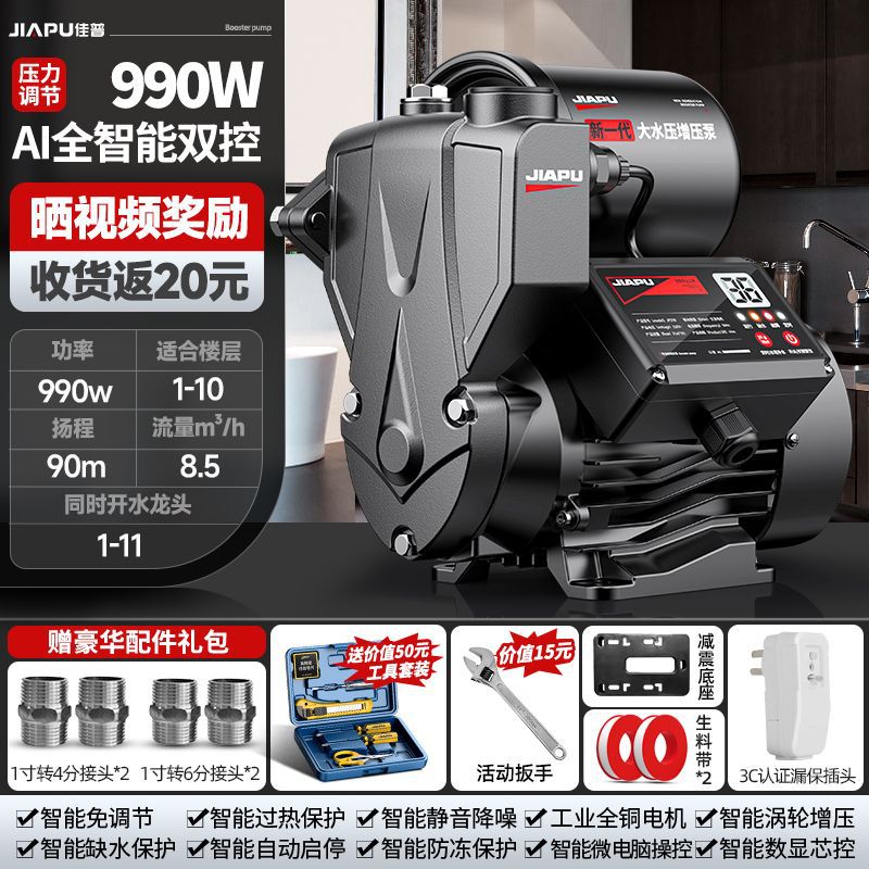 Jia Pu 부스터 펌프 220V 수돗물 파이프라인 가압 자체 흡입 펌프 가정용 태양열 전자동 자동 펌프