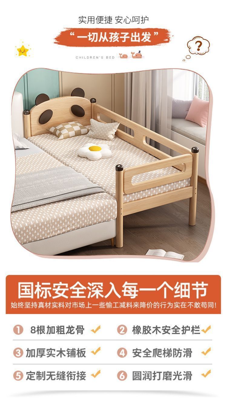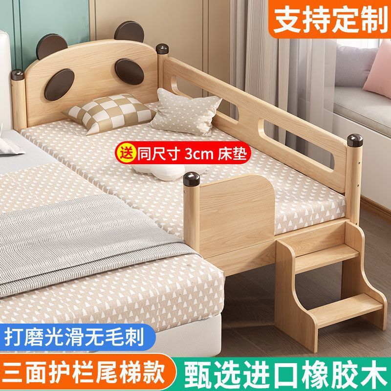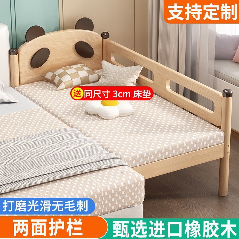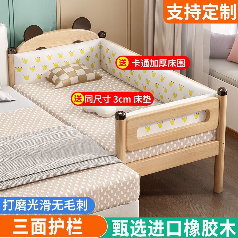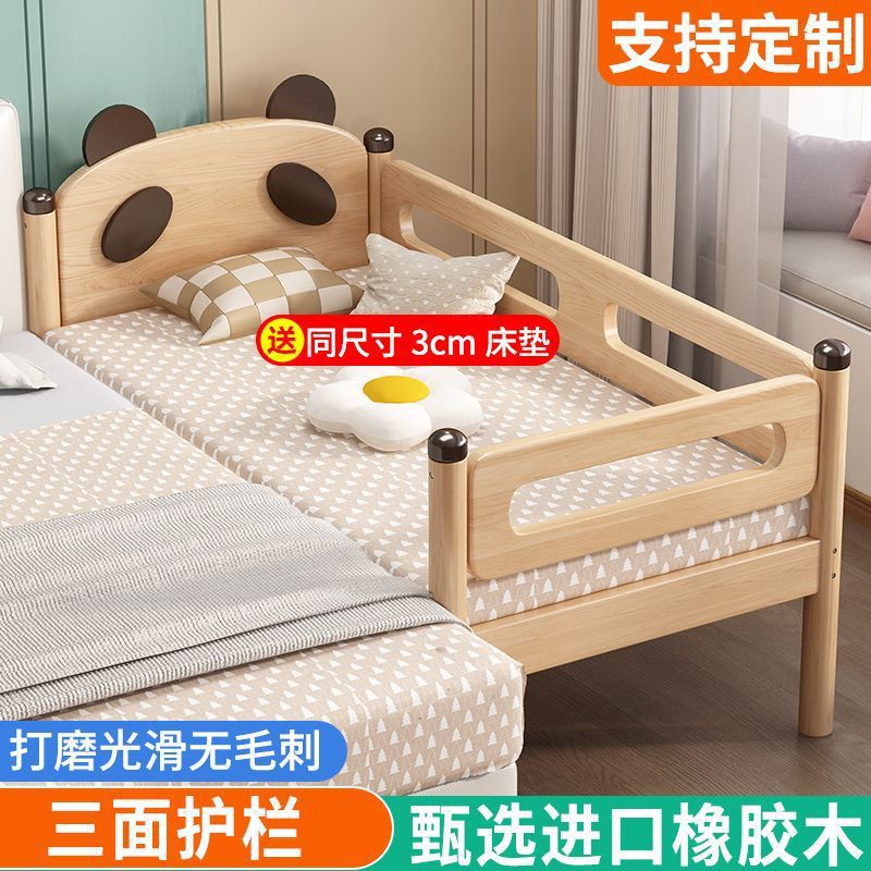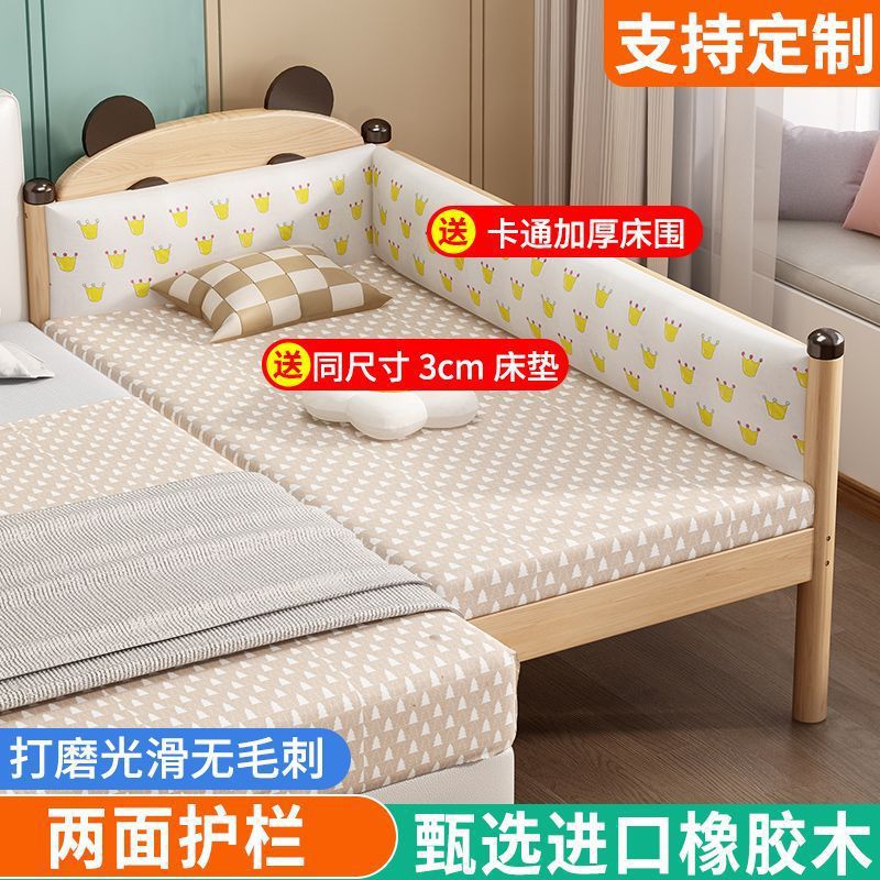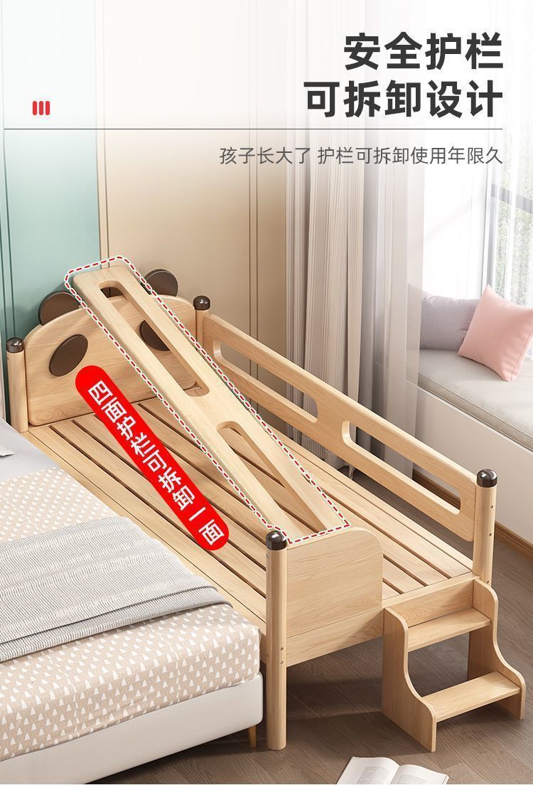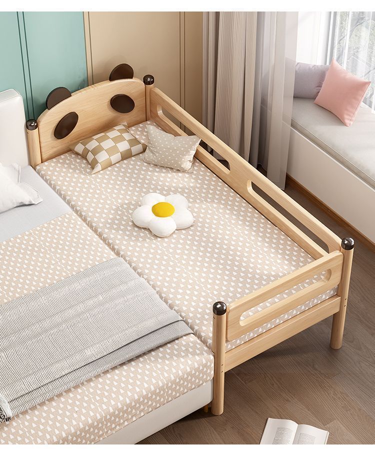 가드레일이 있는 원목 어린이 침대, 남아 및 여아용 유아용 침대, 접합 침대, 아기 침대 옆 침대, 접합 대형 침대스토어 가기