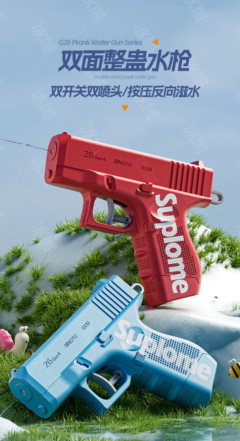 Douyin 새로운 창조적 인 양면 물총 어린이 트릭 전술 역방향 물 스프레이 미니 물총 물 장난감스토어 가기
