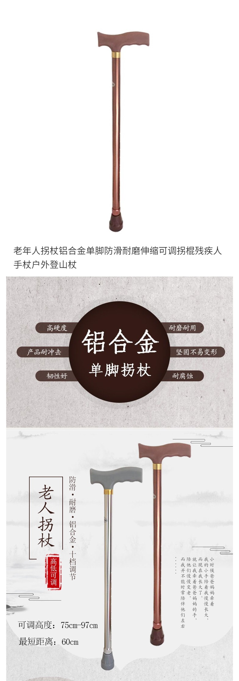 노인을 위한 지팡이, 알루미늄 합금 단일 발 미끄럼 방지 내마모성 텔레스코픽 조절 지팡이, 장애인 지팡이, 야외 등산 지팡이